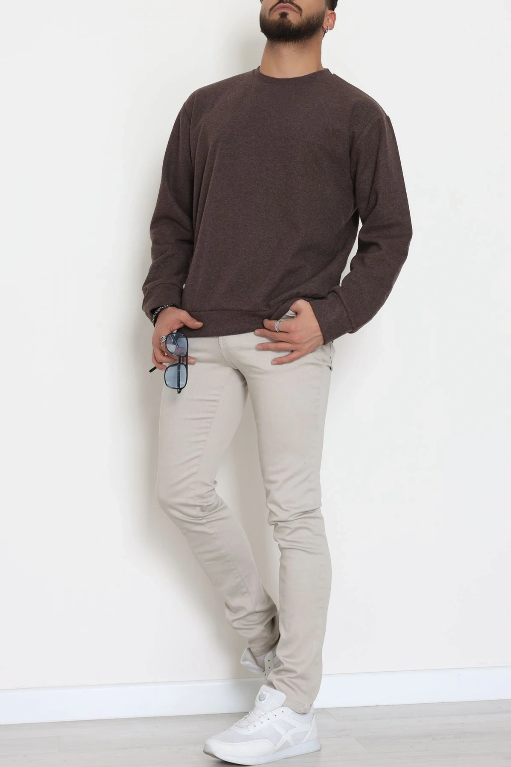 Bisiklet Yaka Selanik Kumaş Erkek Sweat Kahve - 42674.1567.