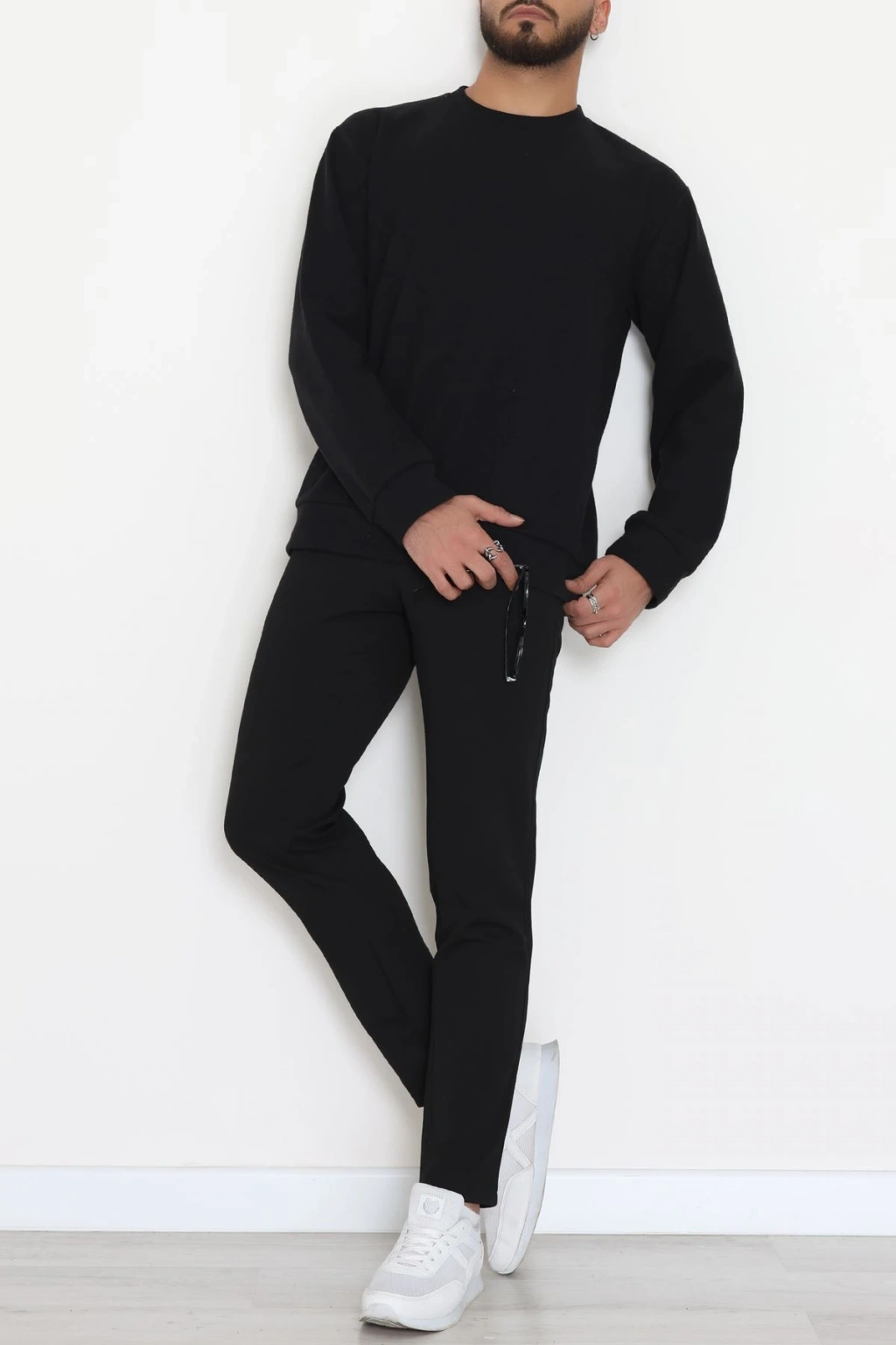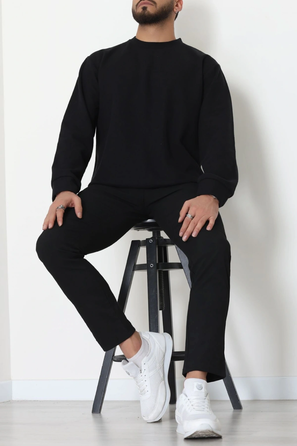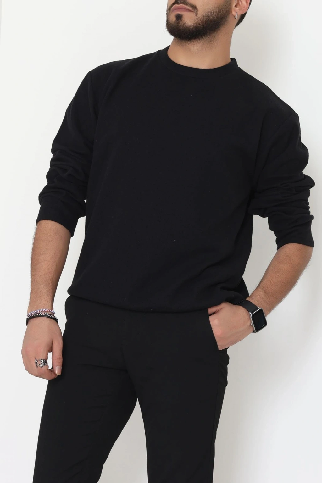 Bisiklet Yaka Selanik Kumaş Erkek Sweat Siyah - 42674.1567.