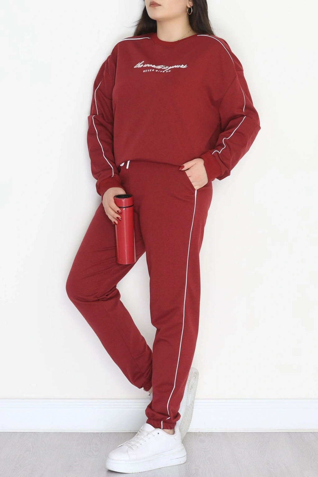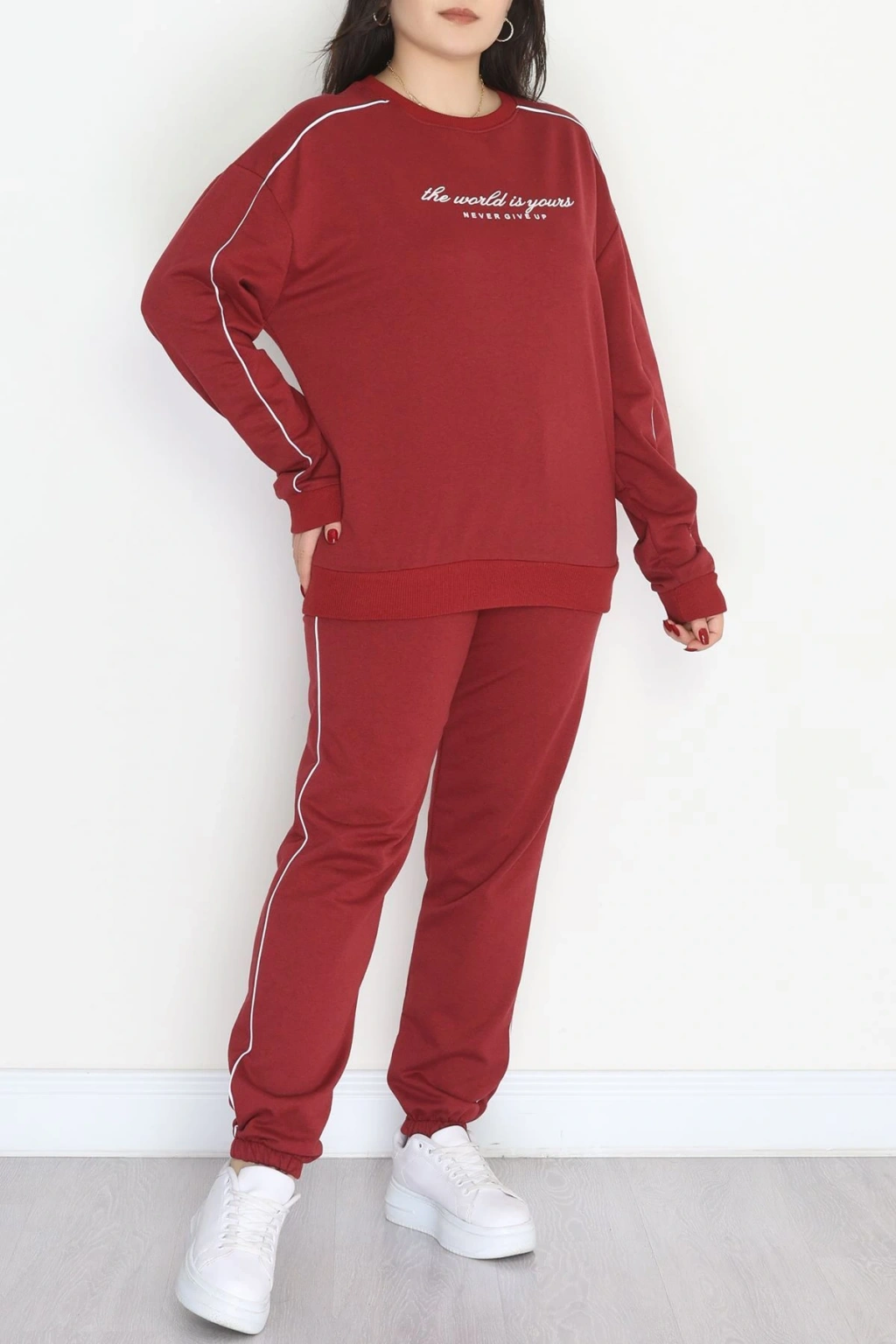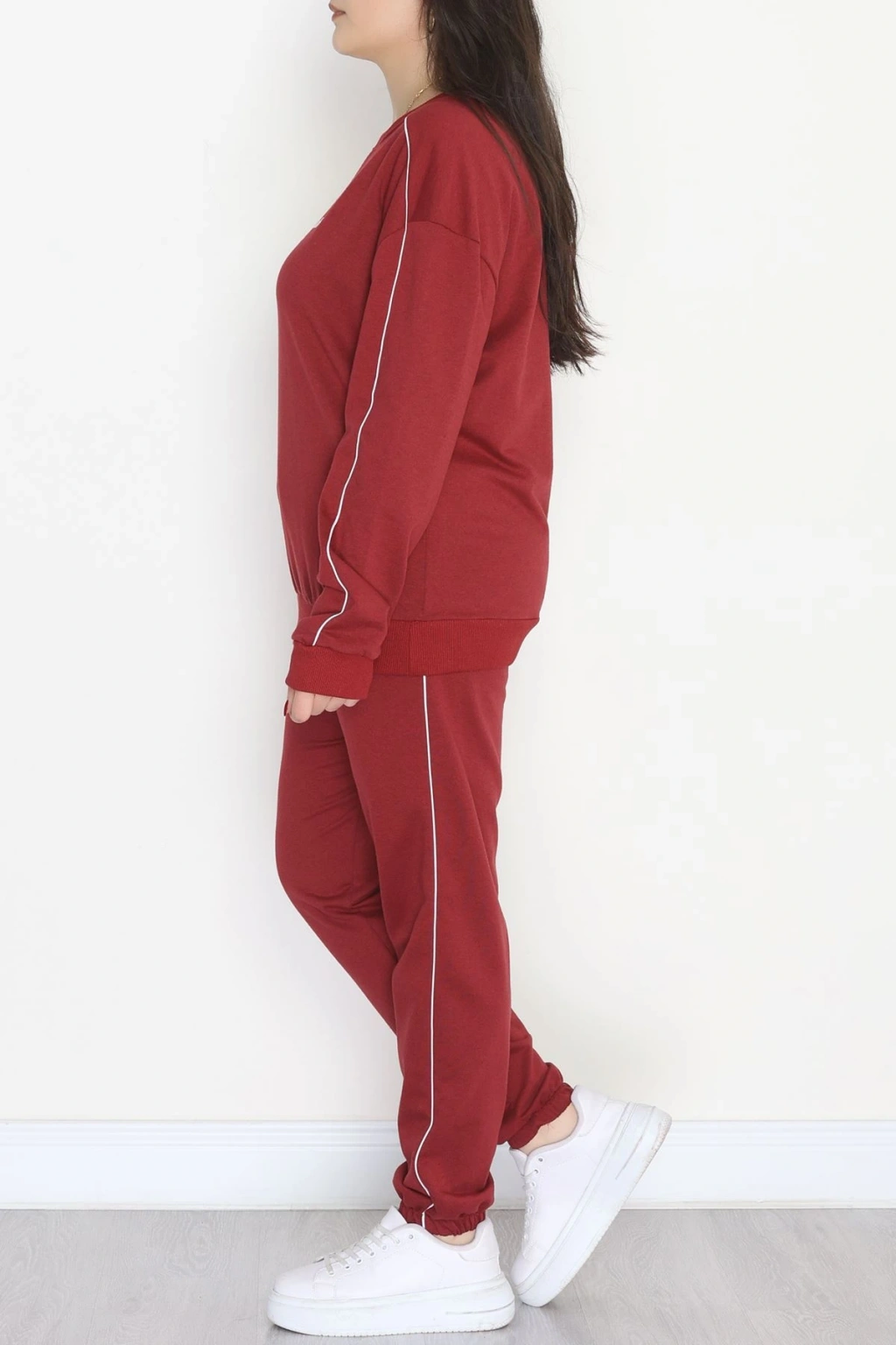 Biyeli 2 İplik Büyük Beden Eşofman Takımı Bordo - 50805.1857.