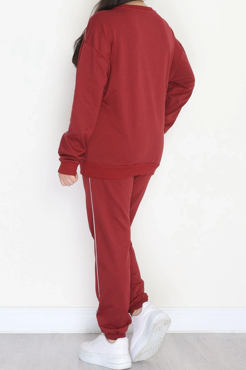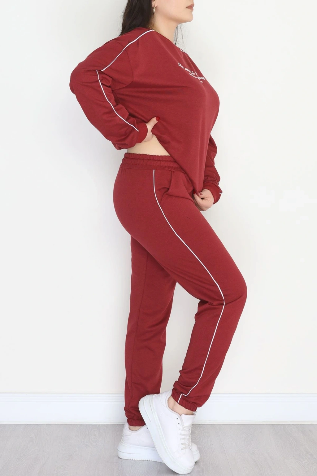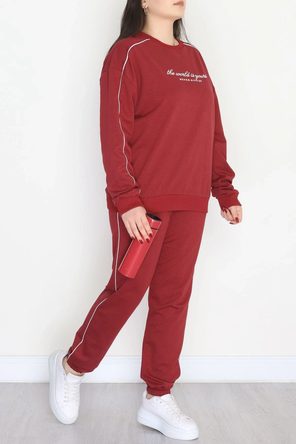Biyeli 2 İplik Büyük Beden Eşofman Takımı Bordo - 50805.1857.
