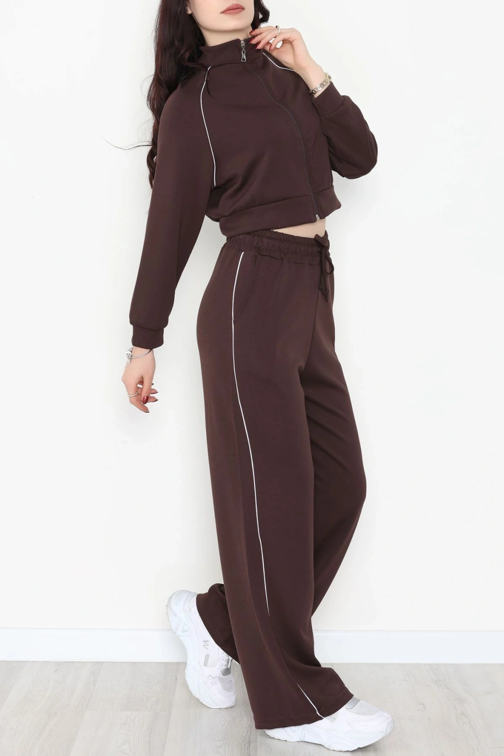 Biyeli Crop Eşofman Takımı Acıkahve - 4130.1247.