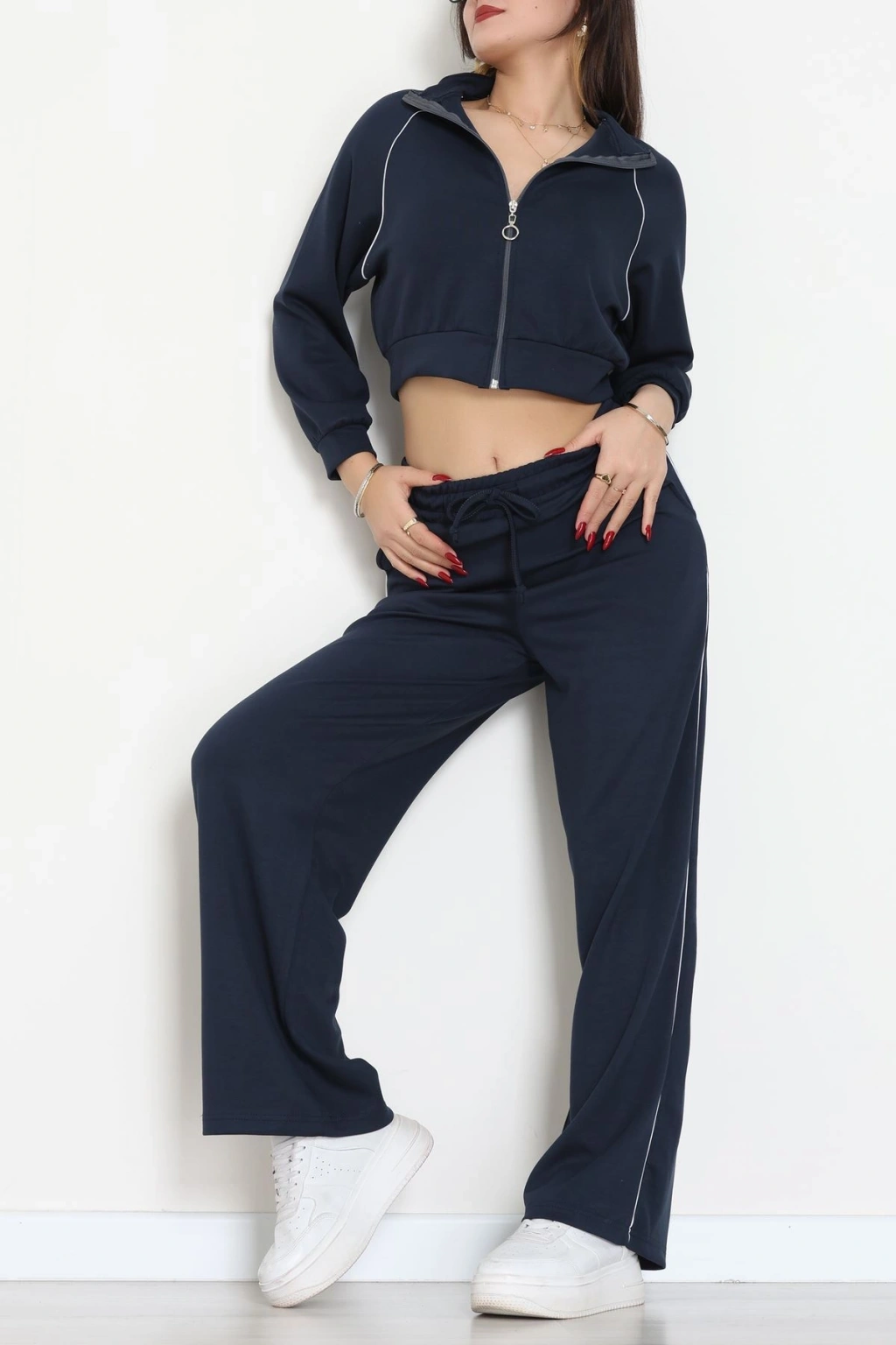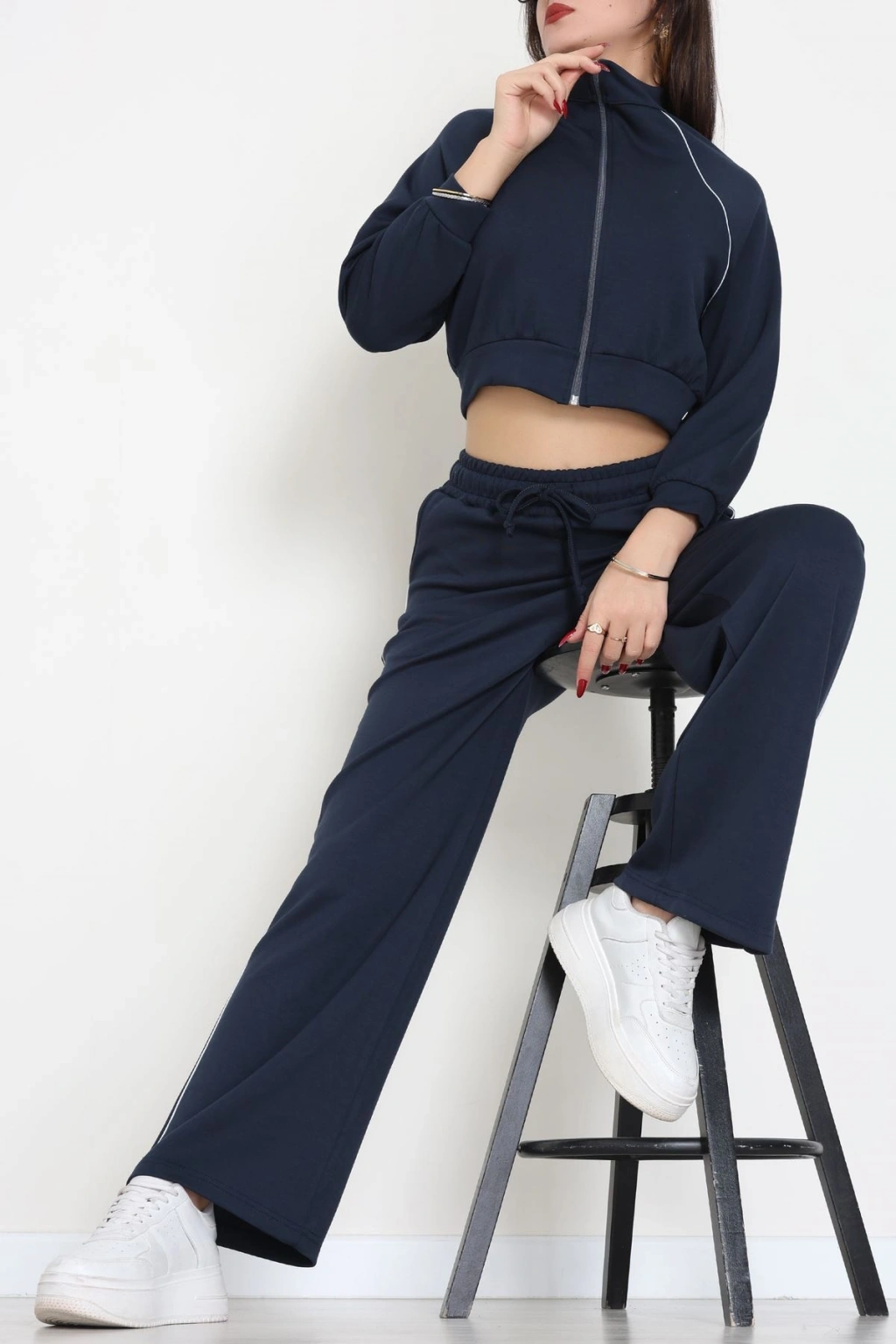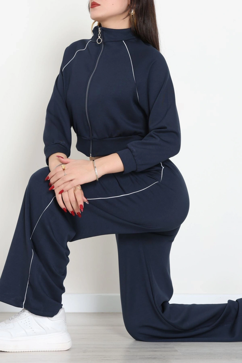 Biyeli Dik Yaka 2 İplik Eşofman Takımı Lacivert - 40030.1857.