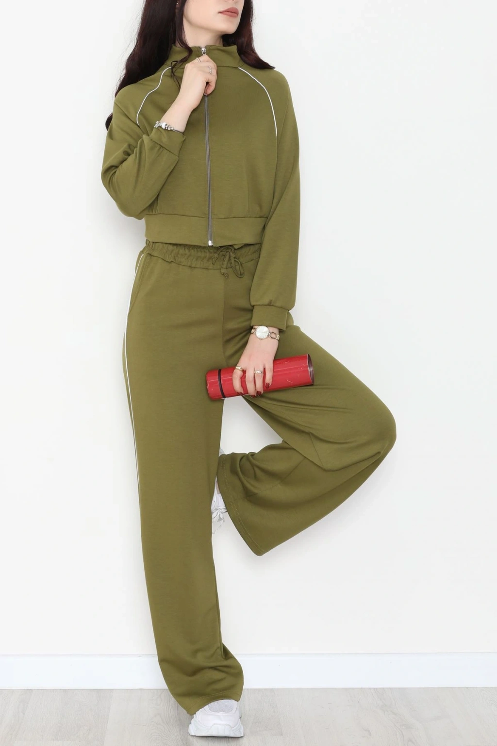 Biyeli Crop Eşofman Takımı Yeşil - 4130.1247.