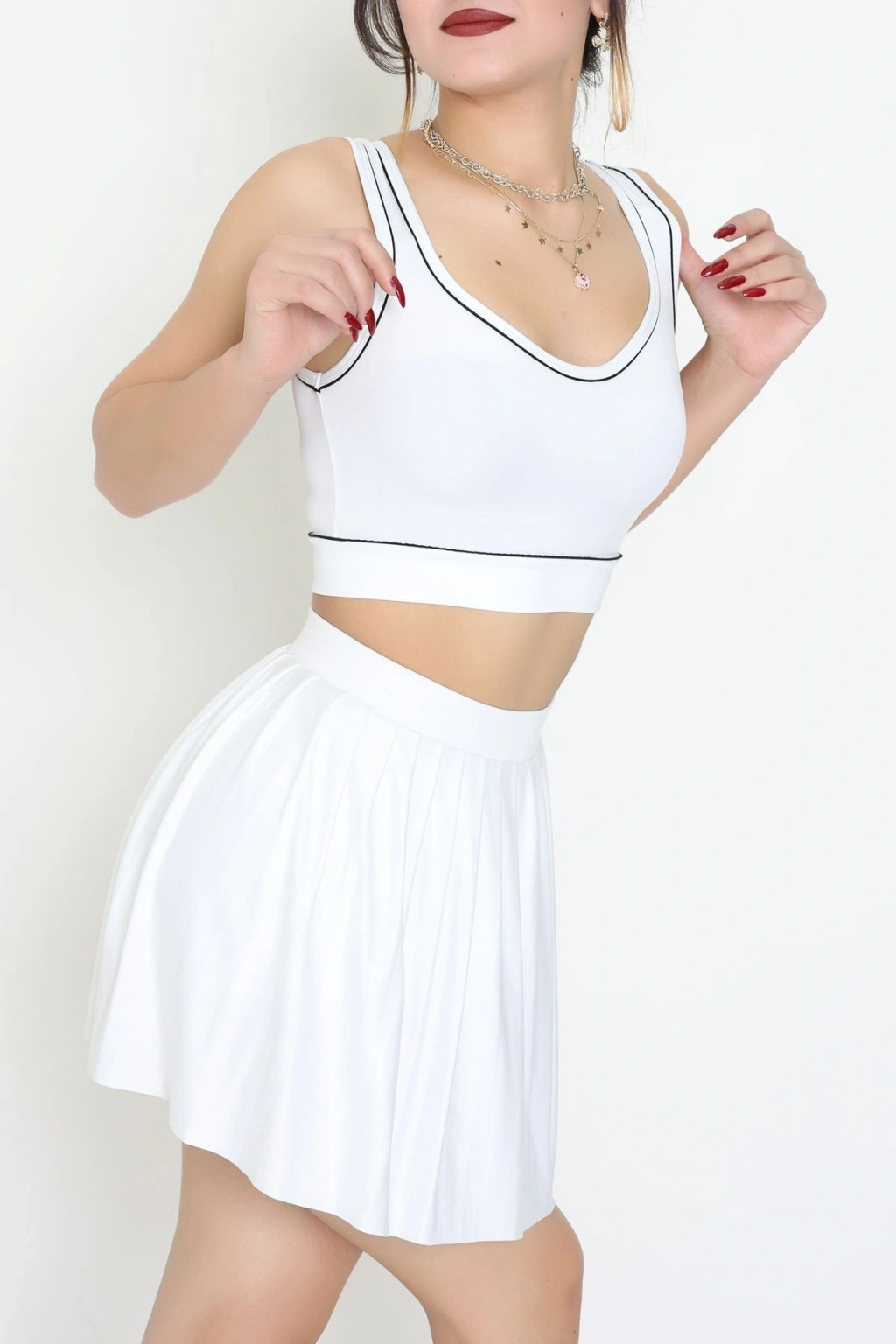 Biyeli Kalın Askılı Crop Atlet Beyaz - 9032.125.