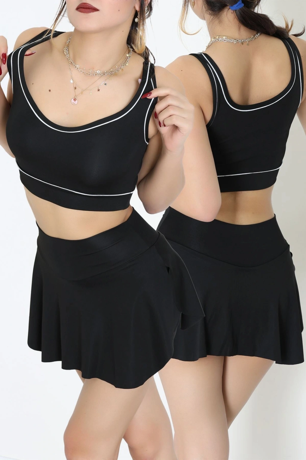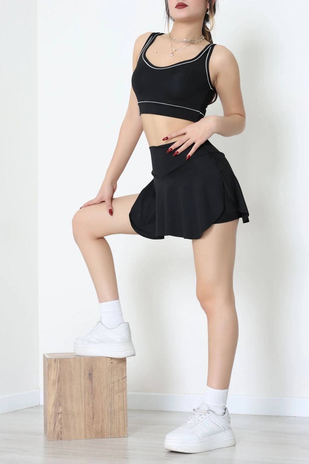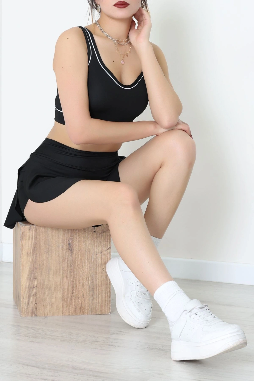 Biyeli Kalın Askılı Crop Atlet Siyah - 9032.125.