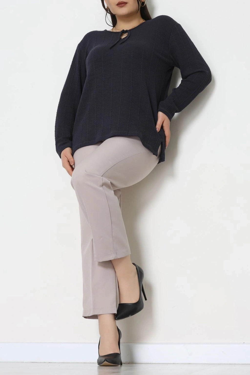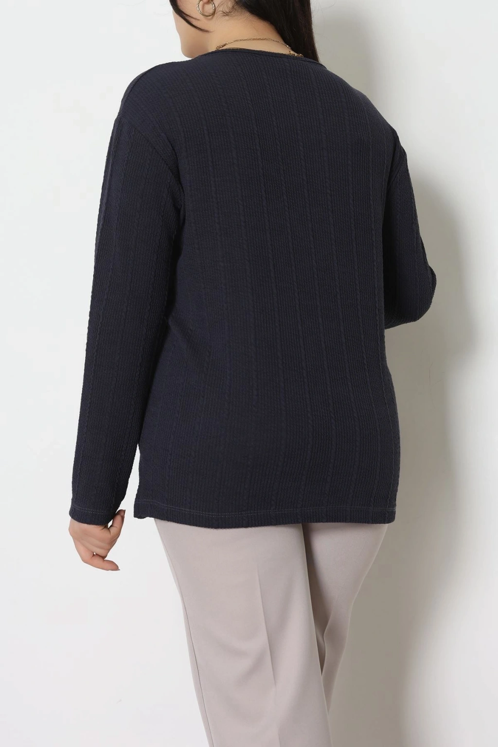 Burgu Kumaş Büyük Beden Bluz Füme - 70813.1954.