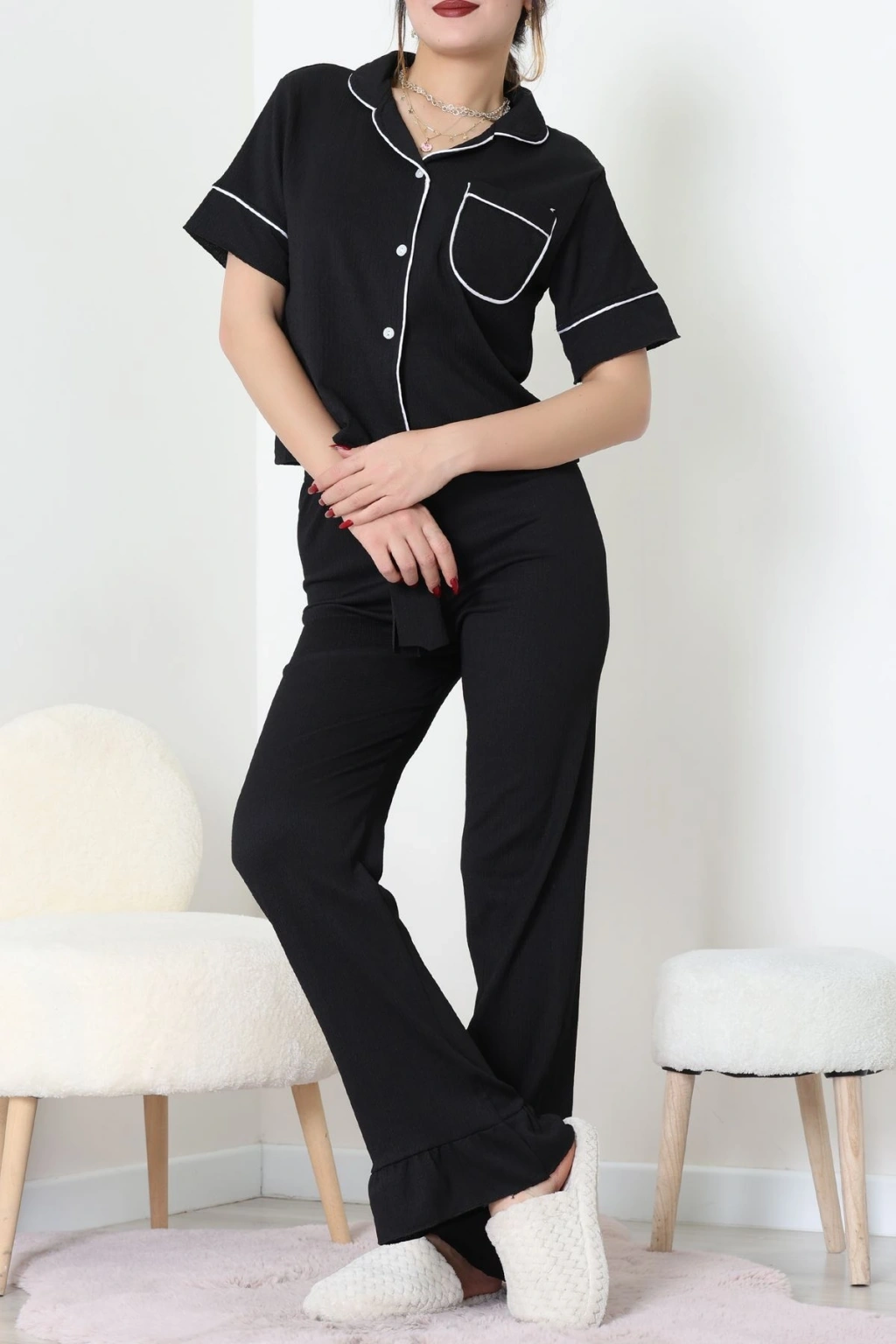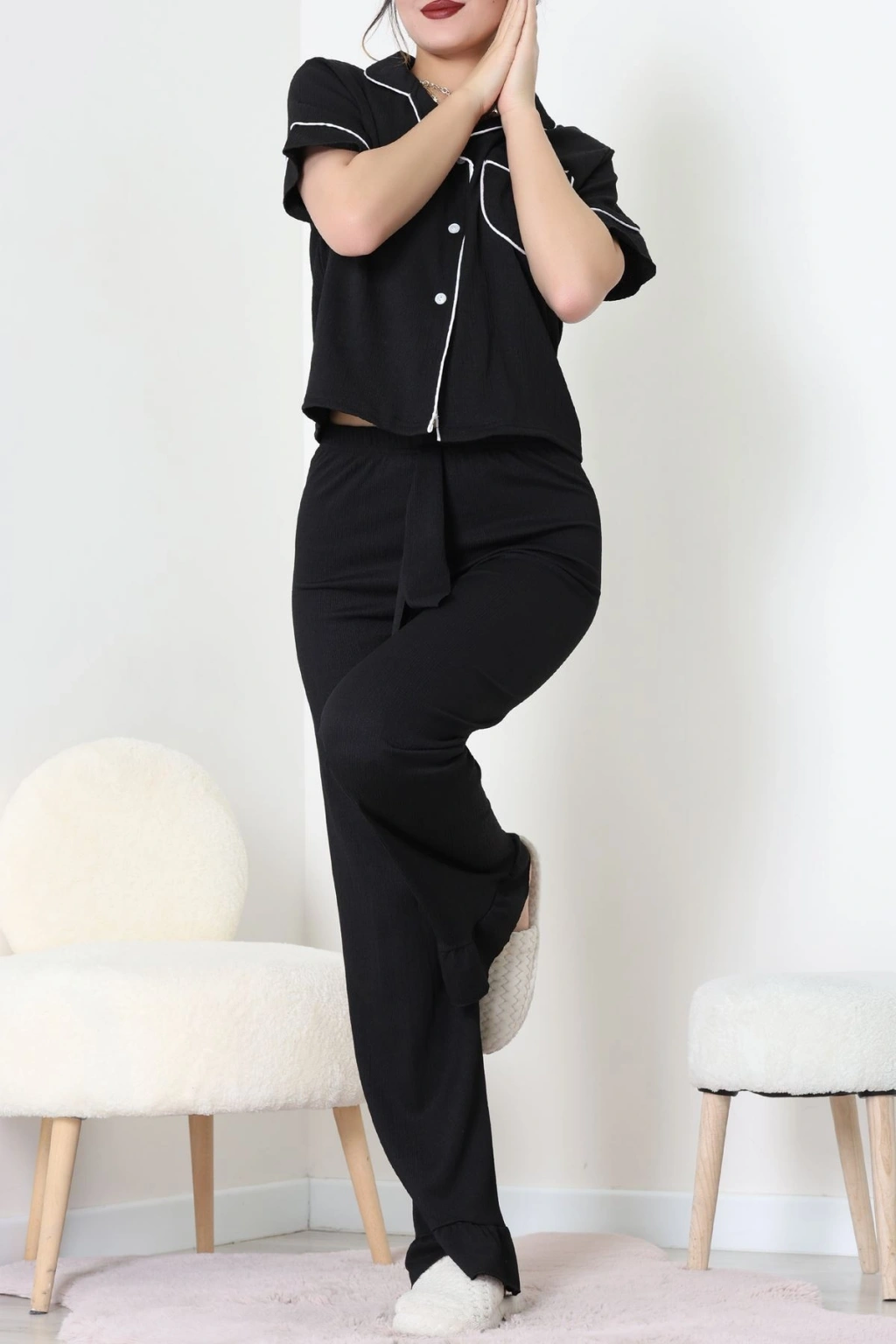 Bürümcük Kumaş Pijama Takımı Siyah - 31800.1961.