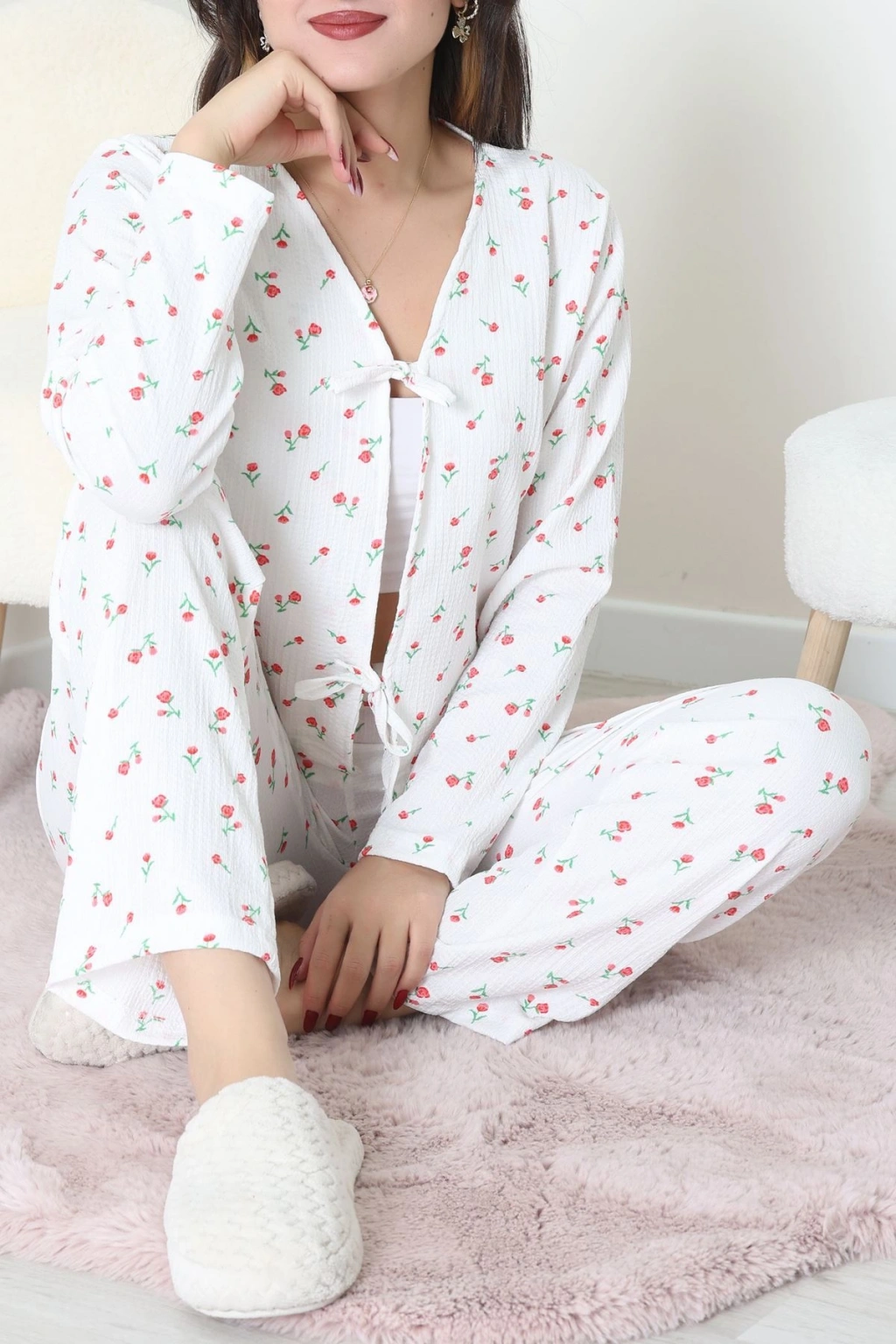 Bürümcük V Yaka Takım Beyazçiçek - 121.1287.