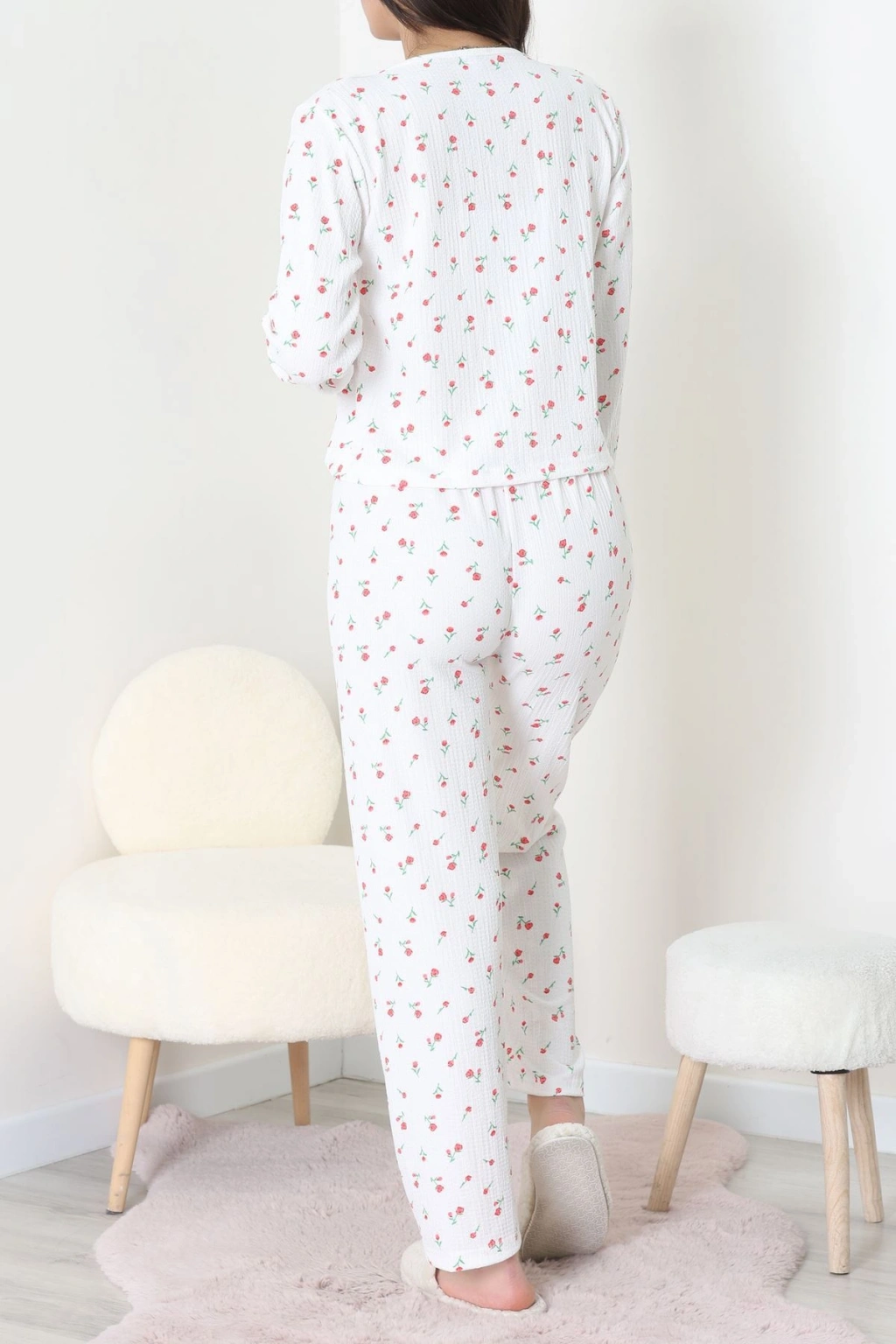 Süet Düğmeli Pijama Takımı Kırmızı1 - 31876.1049.