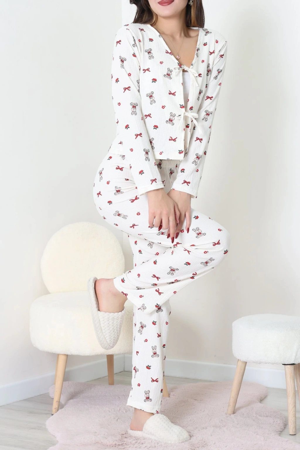 Süet Düğmeli Pijama Takımı Kırmızı1 - 31876.1049.