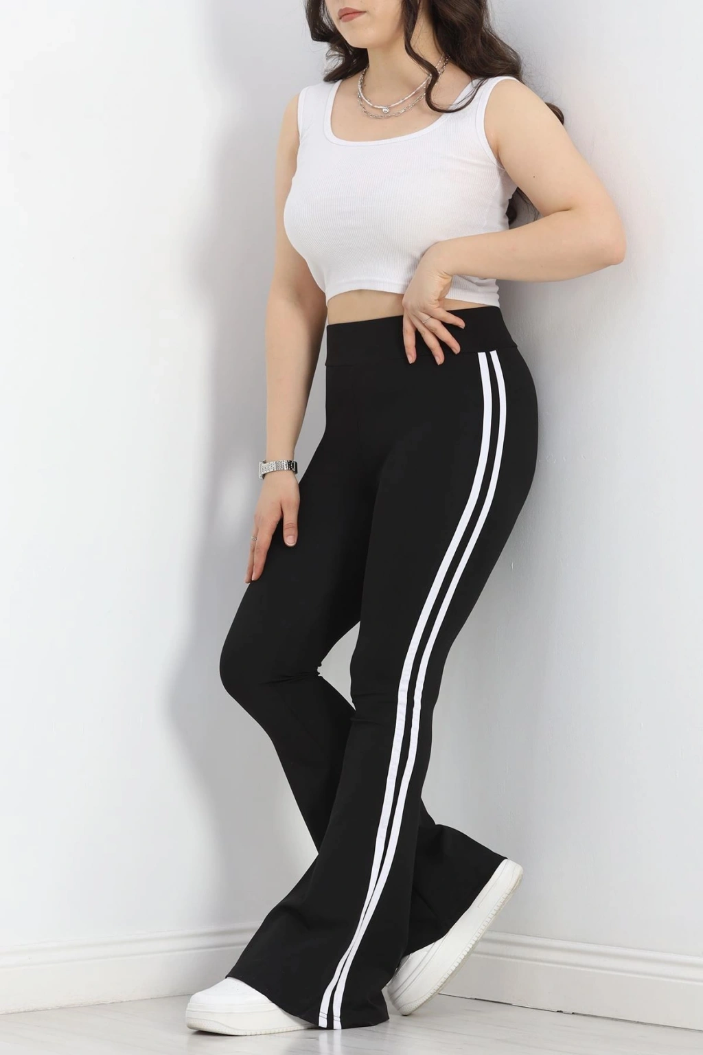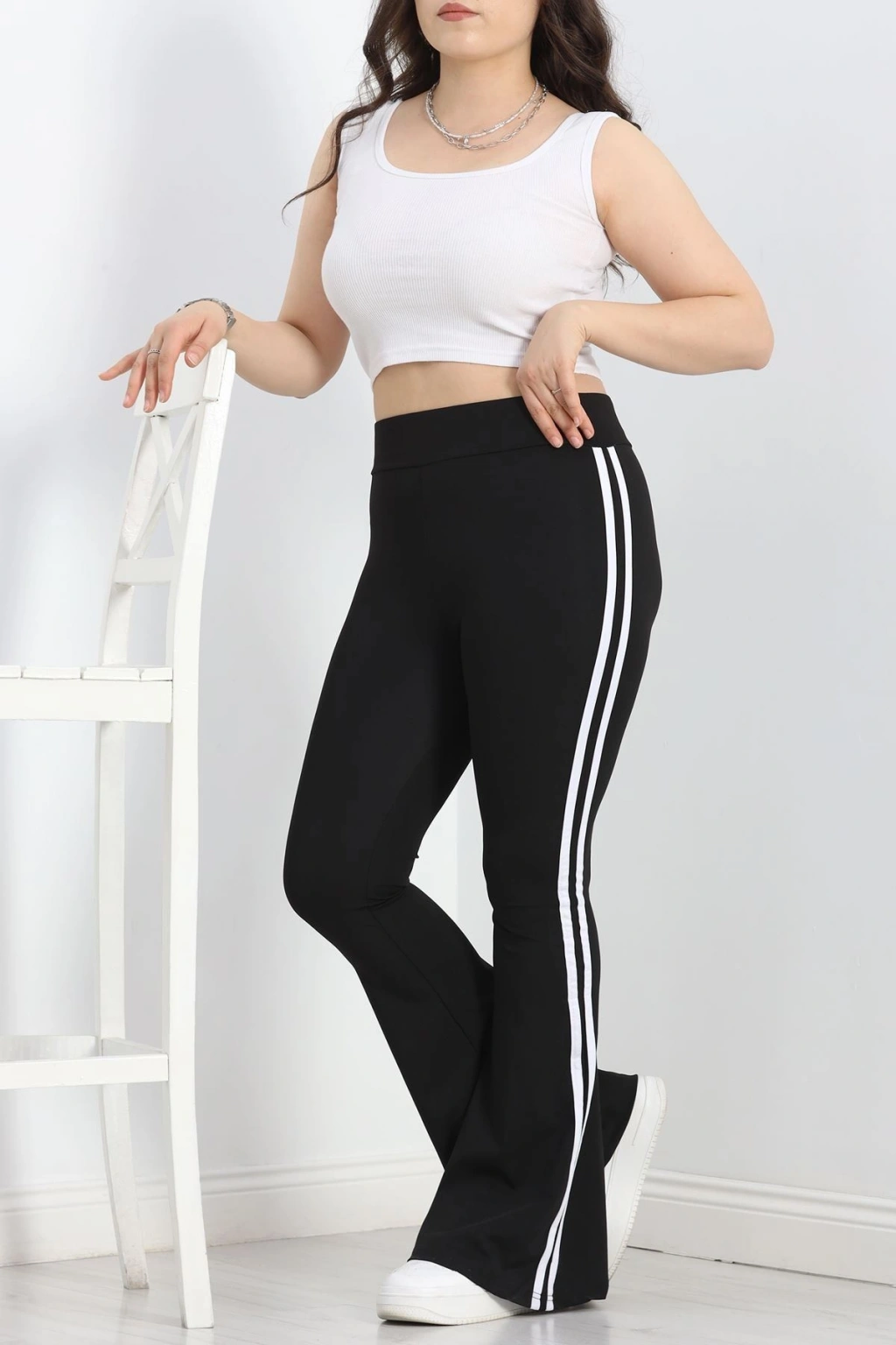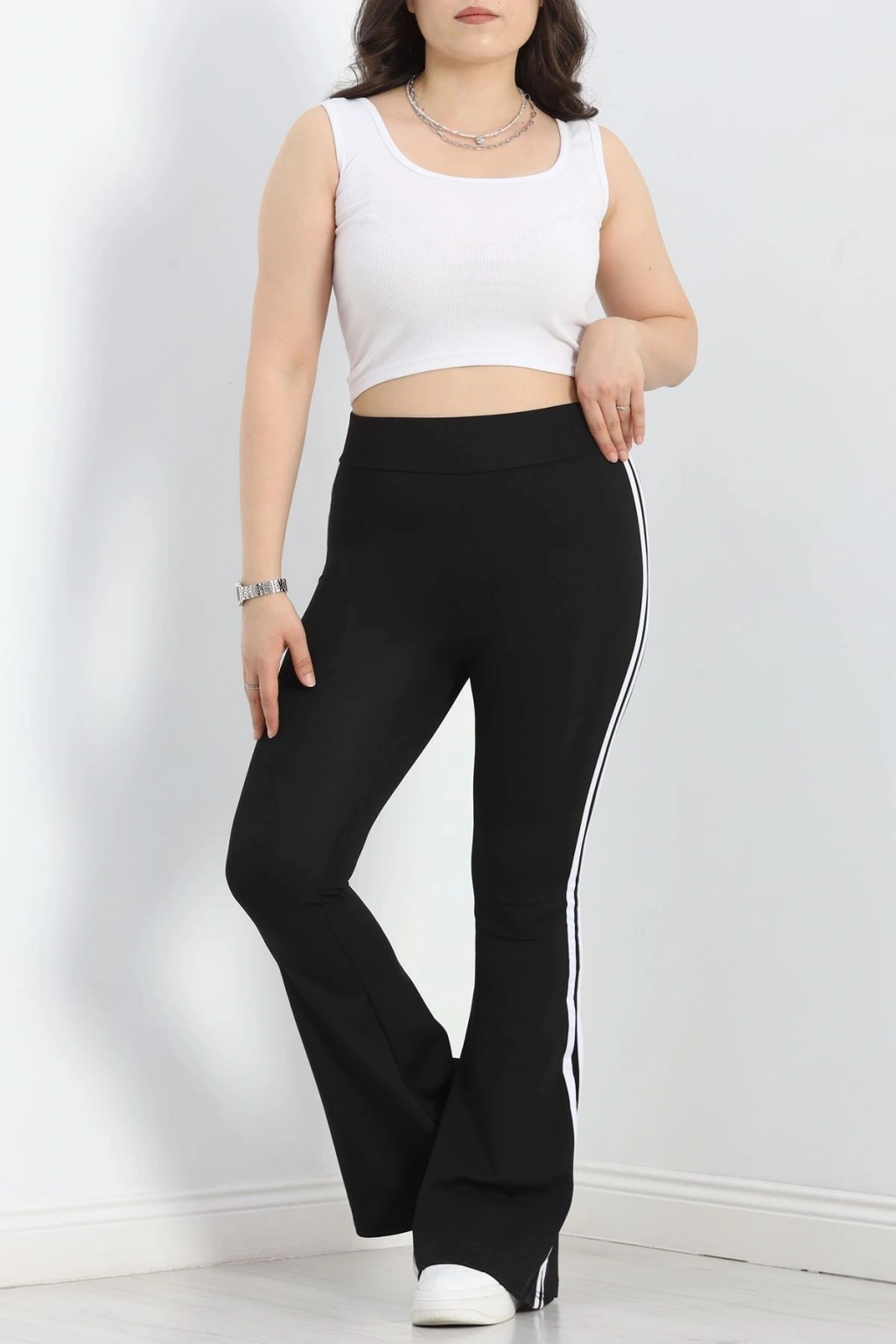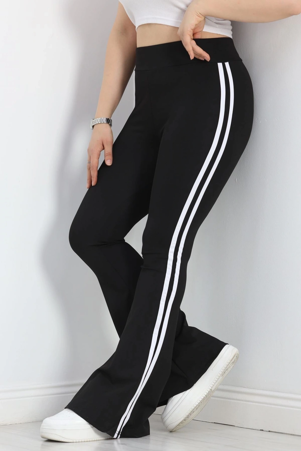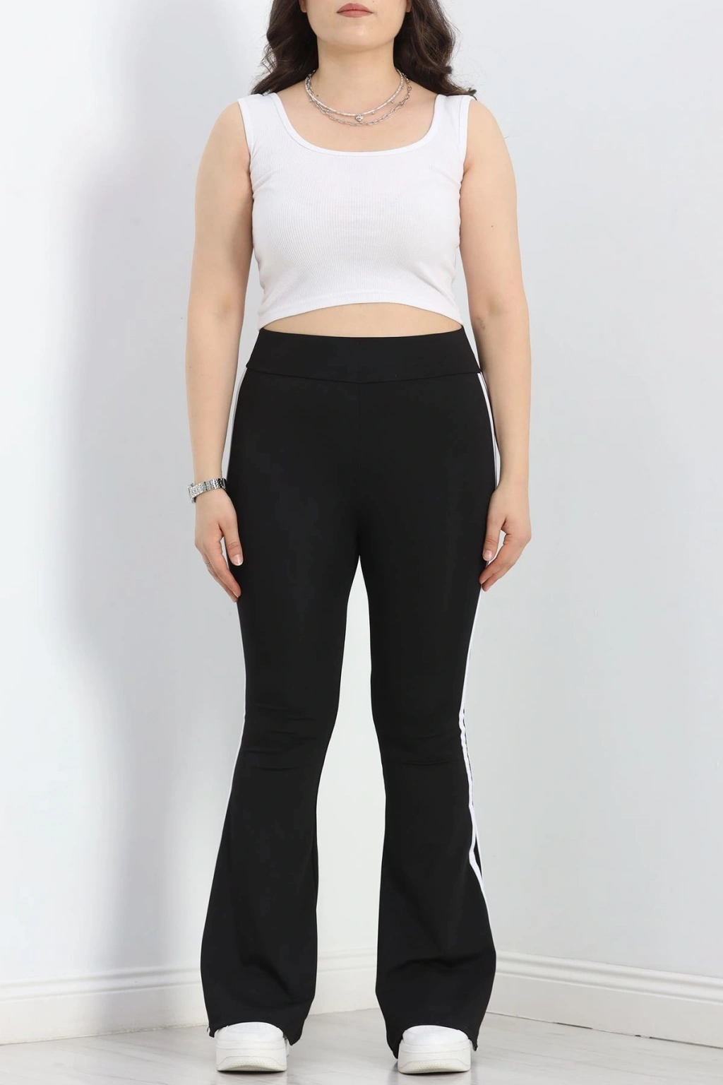 # Büyük Beden Çift Şerit İspanyol Tayt ## Konforlu Şıklık ve Modern Detaylar Bu **büyük beden İspanyol tayt**, esnek likralı dalgıç kumaşıyla gün boyu rahatlık ve stil sunar. Vücudu nazikçe saran **yüksek bel** kesimi ve dizden aşağı genişleyen paça yapısıyla modern bir siluet oluşturur. Paça kenarında yer alan çift beyaz şerit detayı, bu parçaya dinamik bir hava katarken, kombinlerinize sportif bir dokunuş ekler. Esnek kumaşı, hareket özgürlüğünüzü kısıtlamazken, kalıbı sayesinde formunu uzun süre korur. Likralı dalgıç kumaşın sunduğu esneklik, bu modeli özellikle güncel moda trendlerine uygun kılar. Yanlardaki kontrast **çift şerit** detayı, bacak boyunu daha uzun göstermeye yardımcı olur ve tasarıma özgün bir karakter katar. Şık ve rahat bir **büyük beden İspanyol tayt arayanlar için** bu model, fiyat performans açısından dikkat çeken bir seçenektir. Hemen sepete ekleyin.