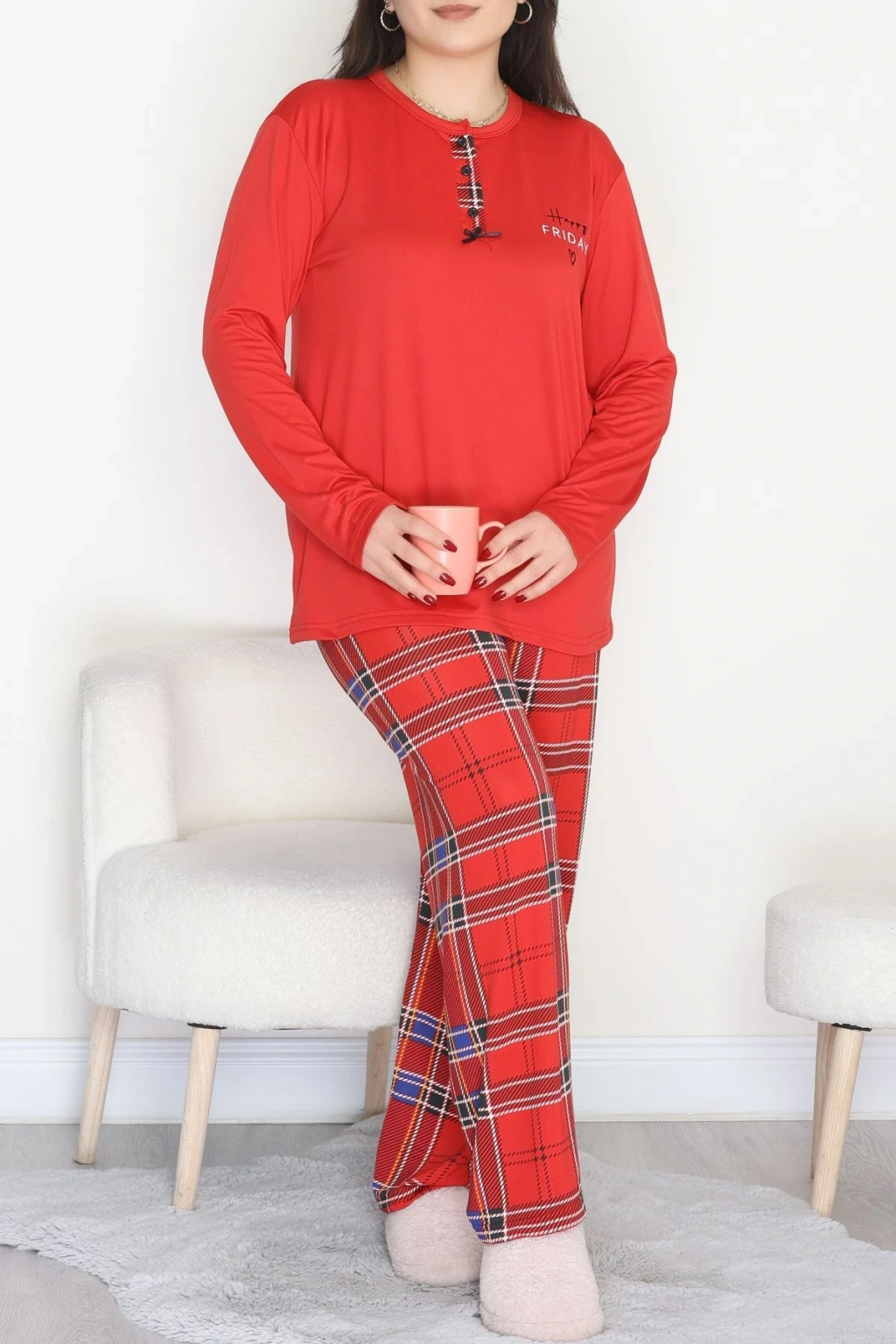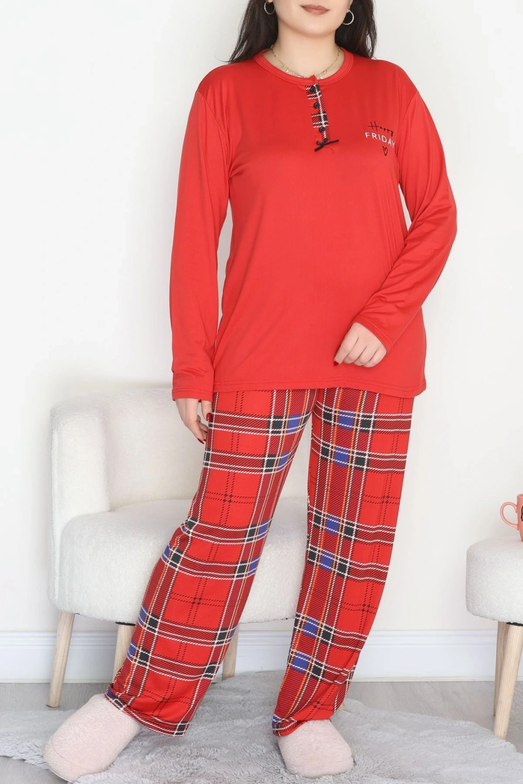 Büyük Beden Patlı Pijama Takımı Kırmızıekose - 258.1287.