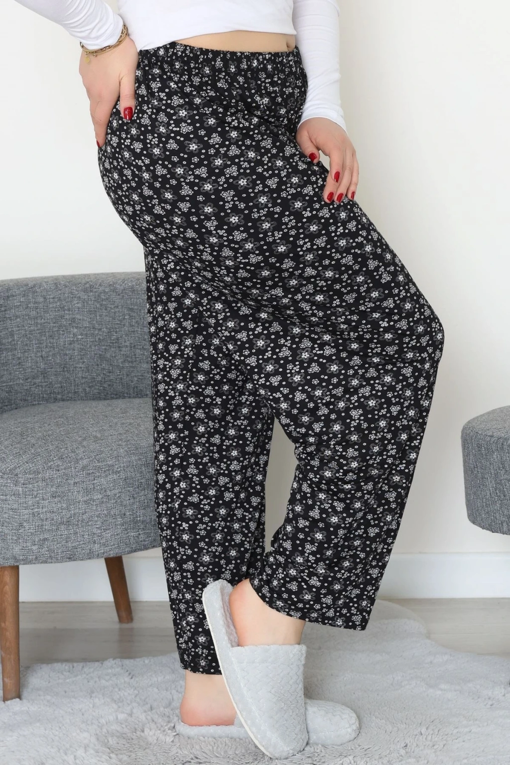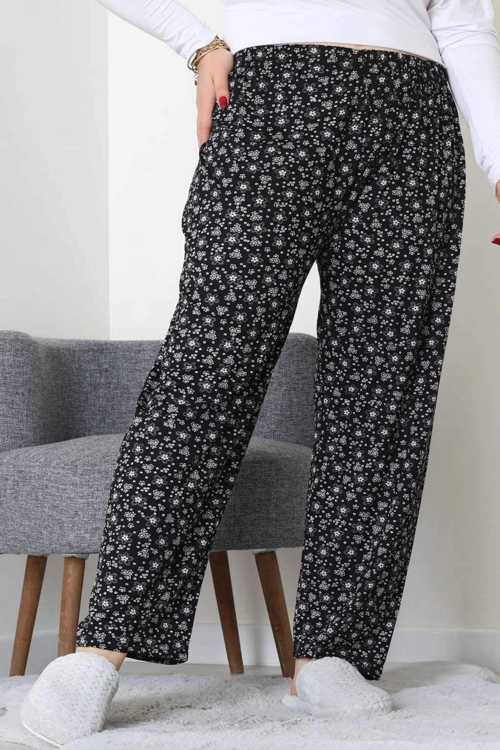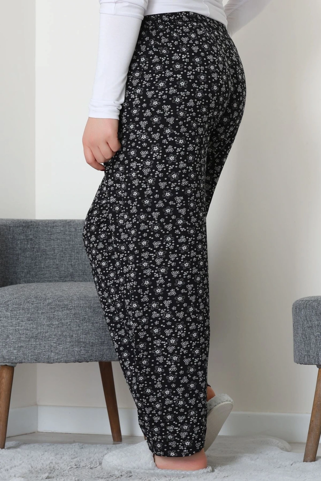 Büyük Beden Viskon Alt Siyahçiçekli - 52121.1567.