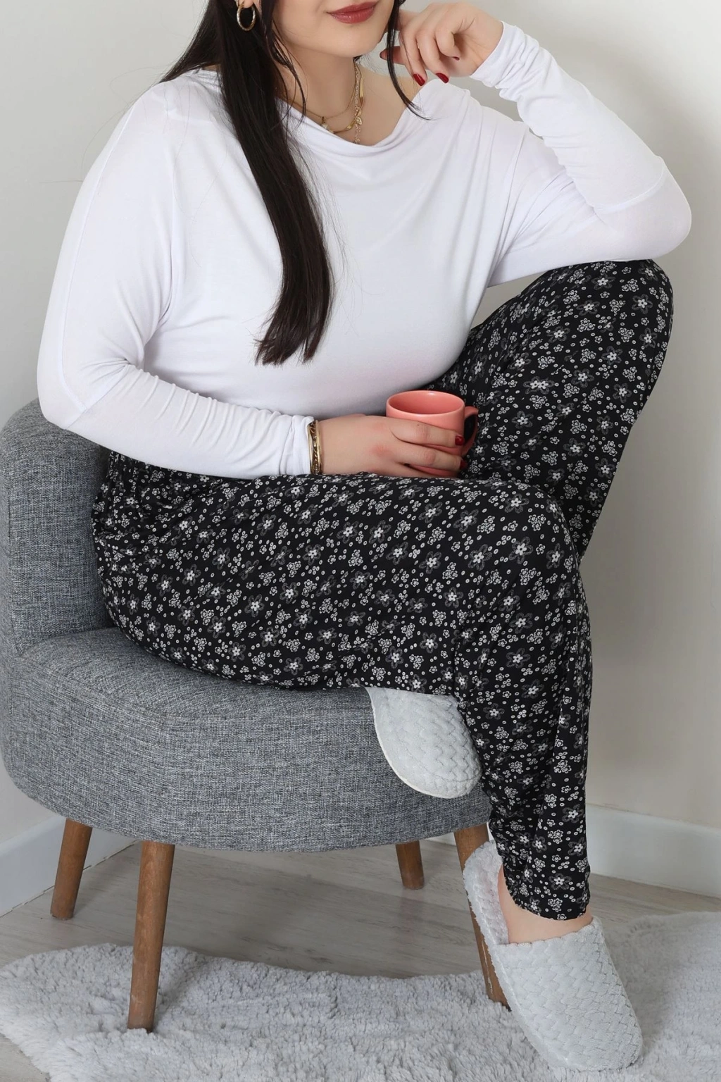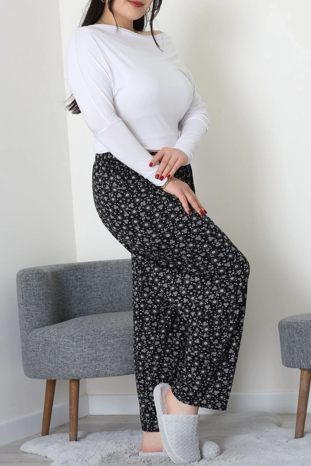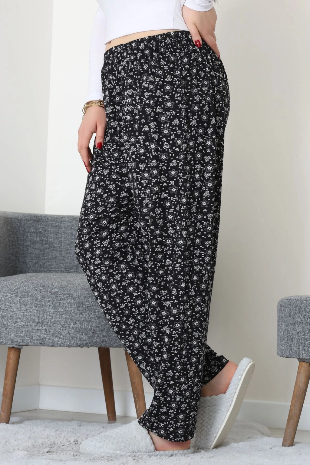 Büyük Beden Viskon Alt Siyahçiçekli - 52121.1567.