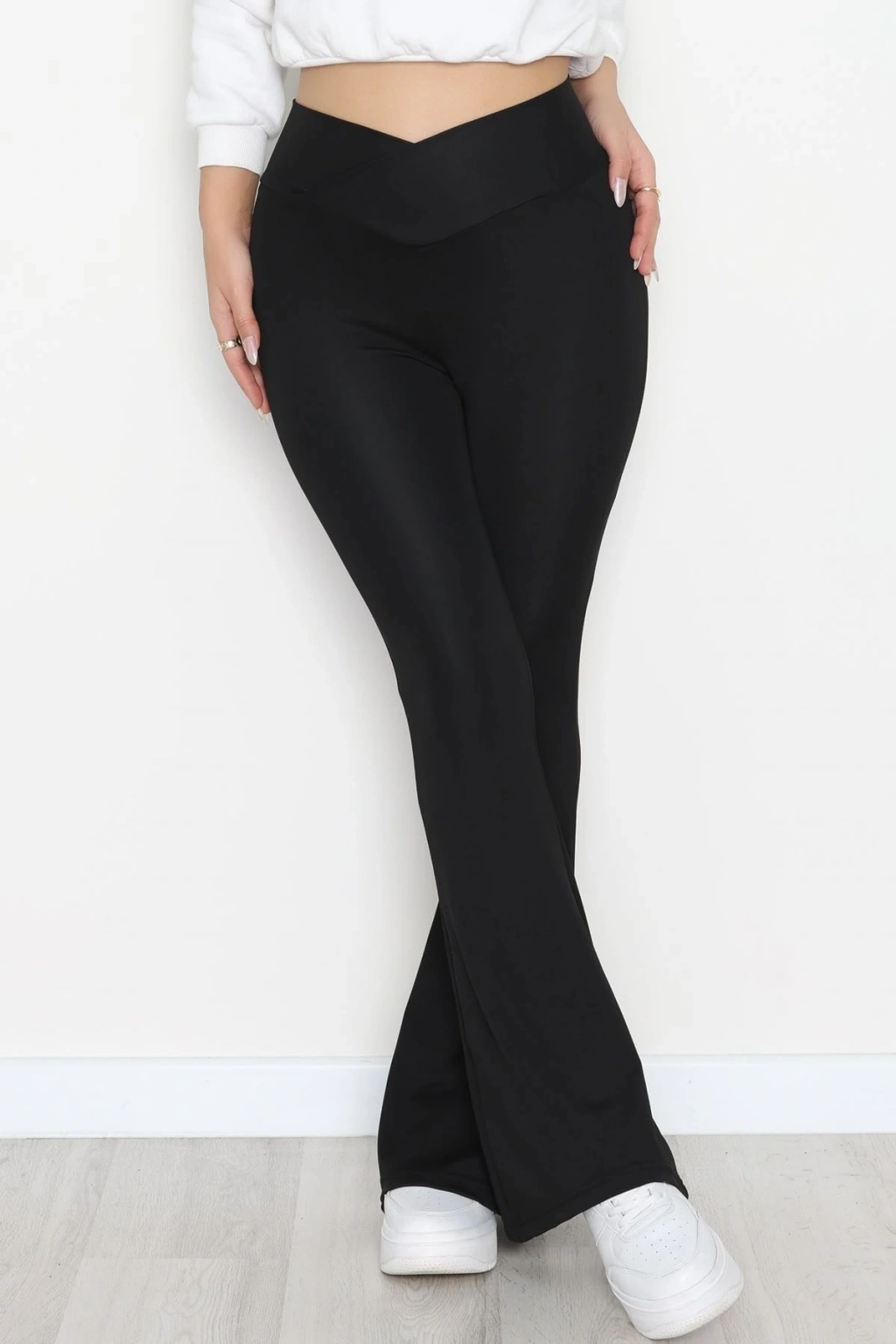 Çapraz Kemer Dalgıç Kumaş Tayt Siyah - 52084.1098.