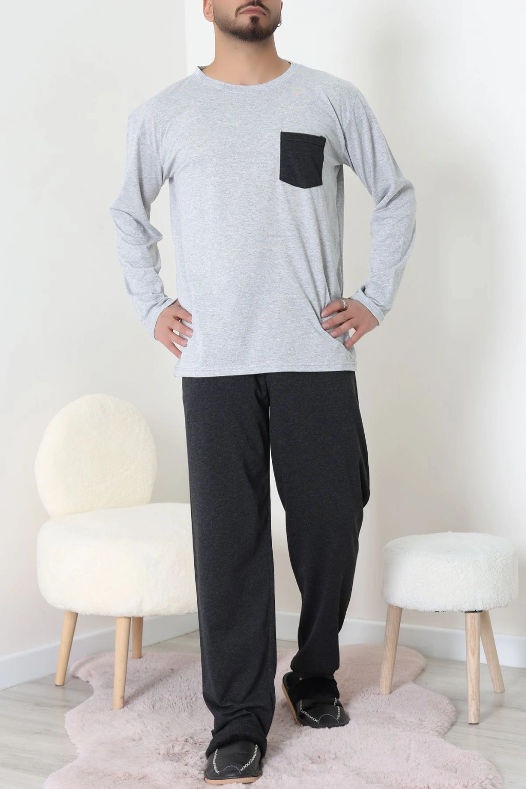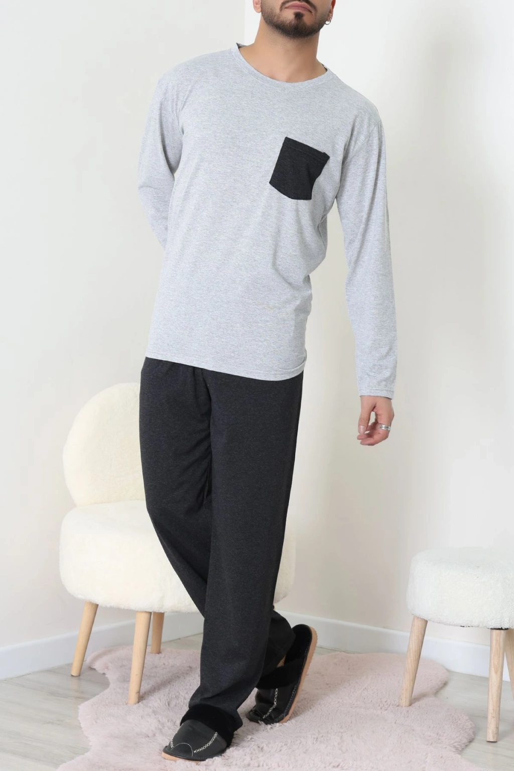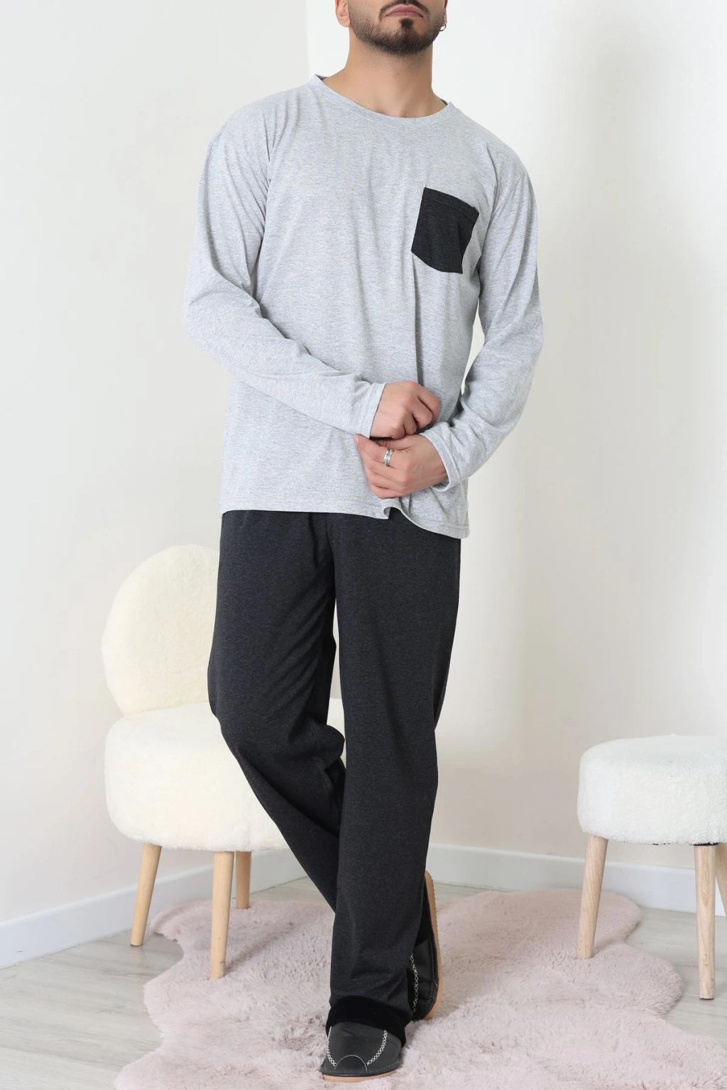 Cep Detay Süprem Erkek Pijama Takımı Gri - 42218.1048.