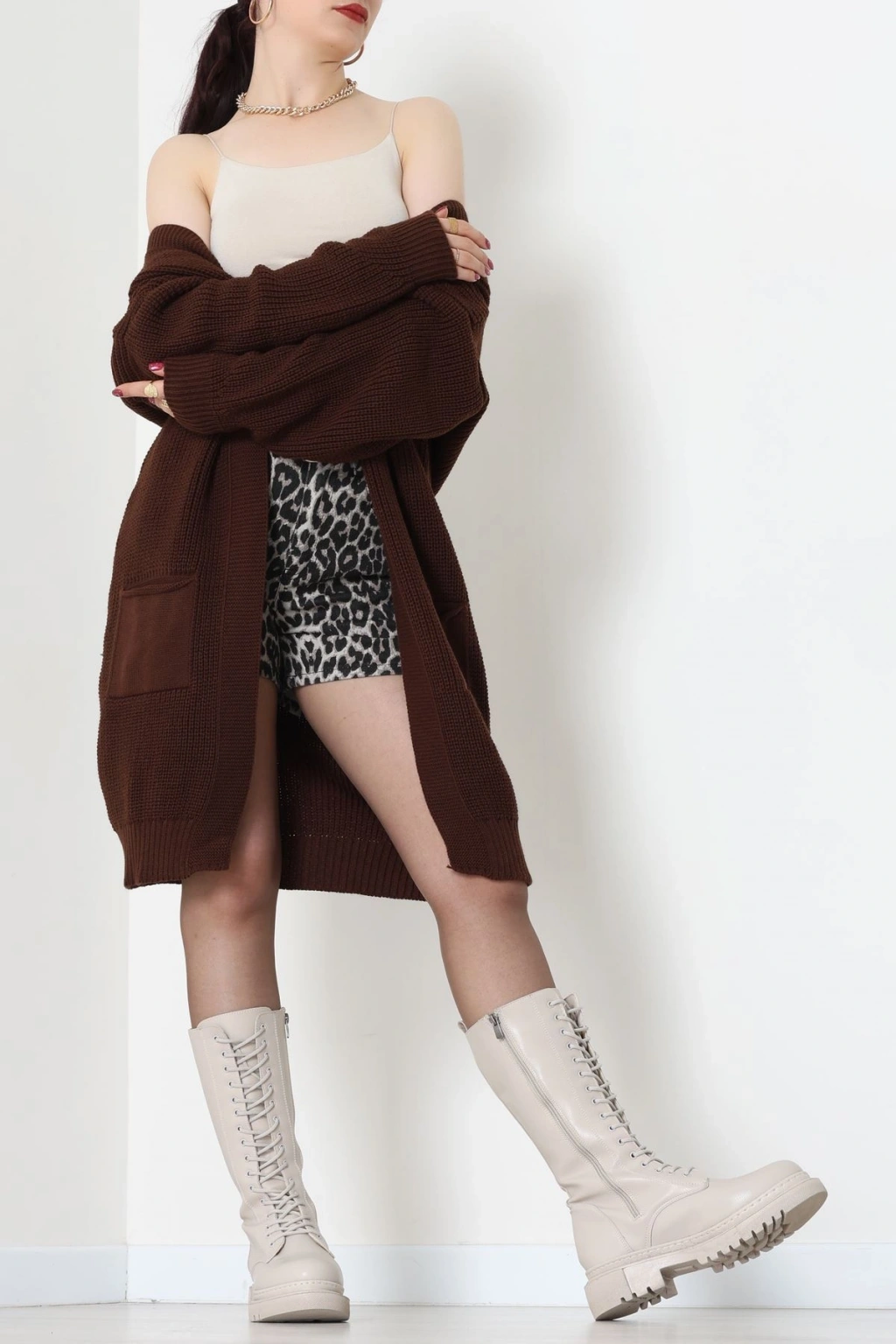 Düğmeli Hırka Kahve - 31834.2131.