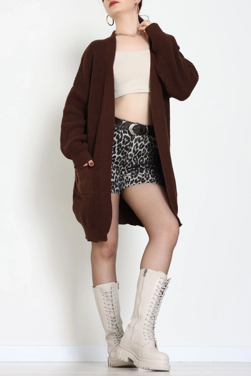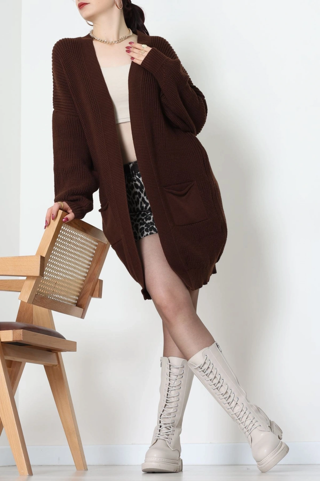 Cep Detaylı Triko Hırka Kahve - 436.1577.