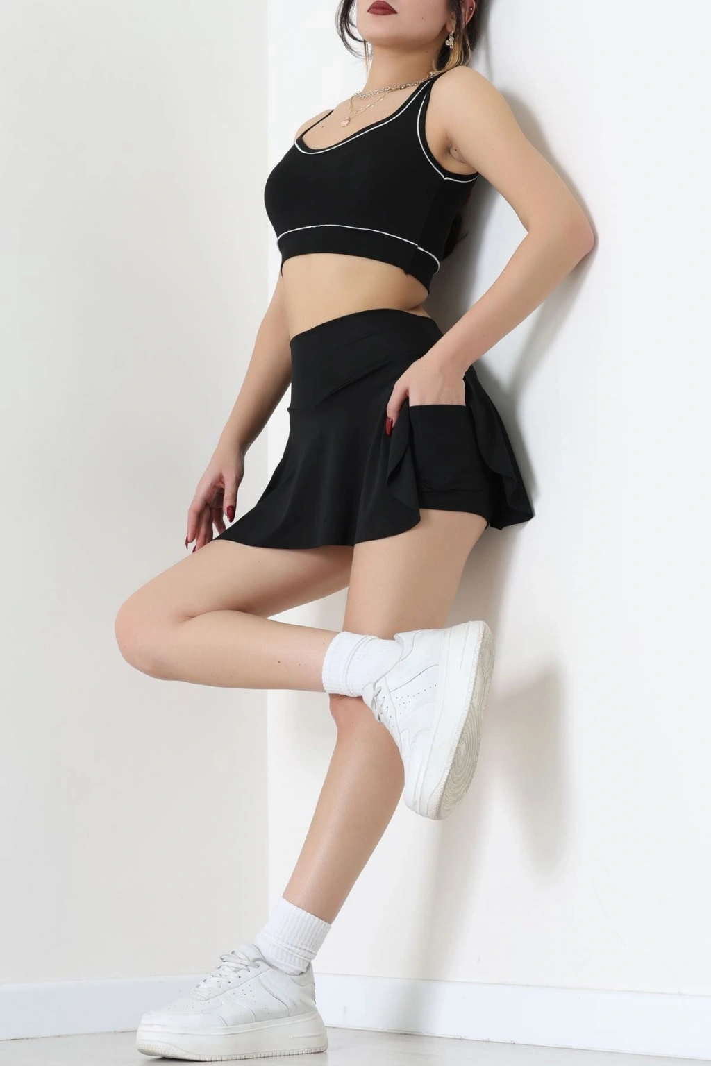 Dabıl Kumaş Mini Etek Siyah - 51259.1991.