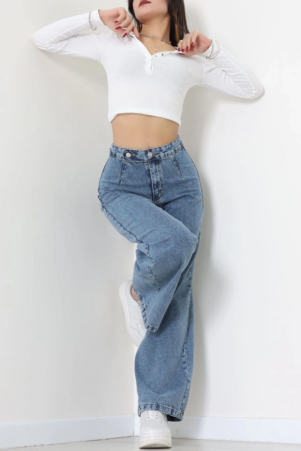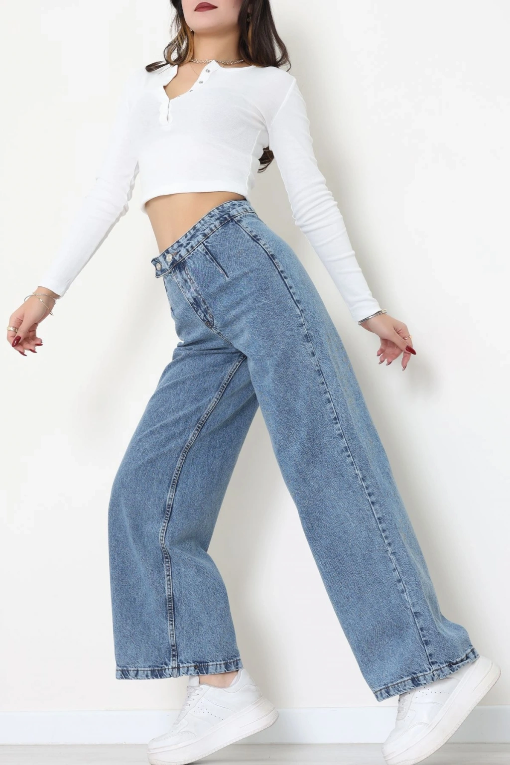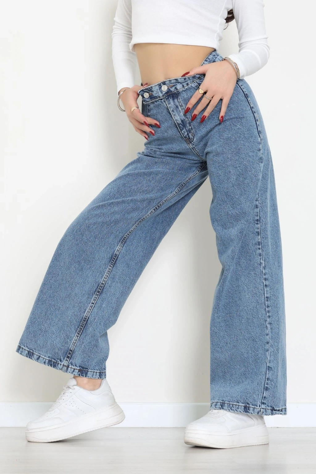 Arkası Tokalı Baggy Kot Pantolon Mavi - 31895.1606.