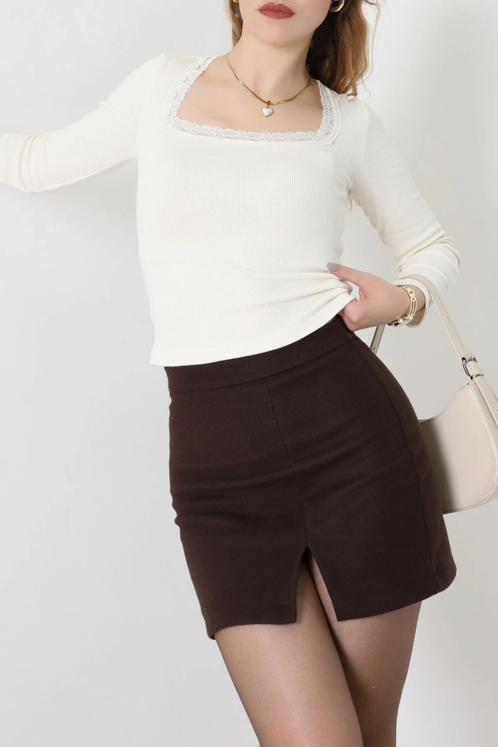 Çerçeve Yaka Dantelli Kaşkorse Body Krem - 70789.599.