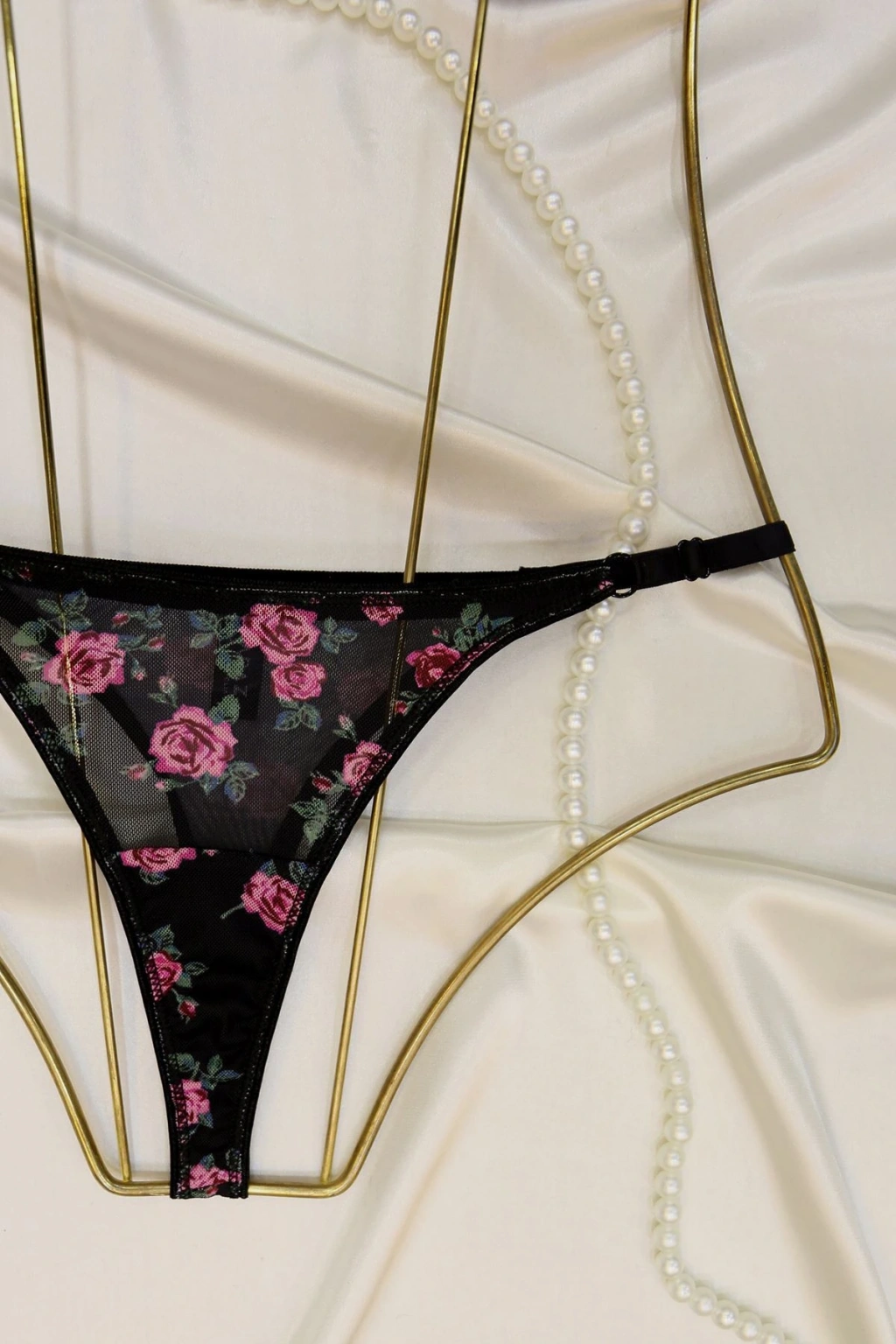 Çiçek Baskılı Tül Takım Dolu Kap Siyah - 2563.1783.