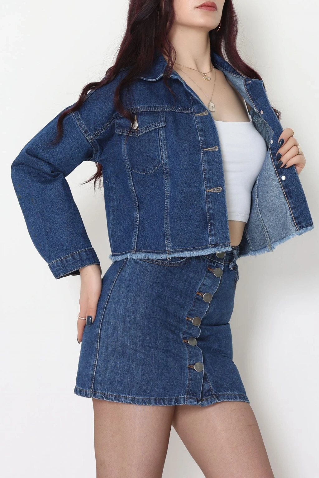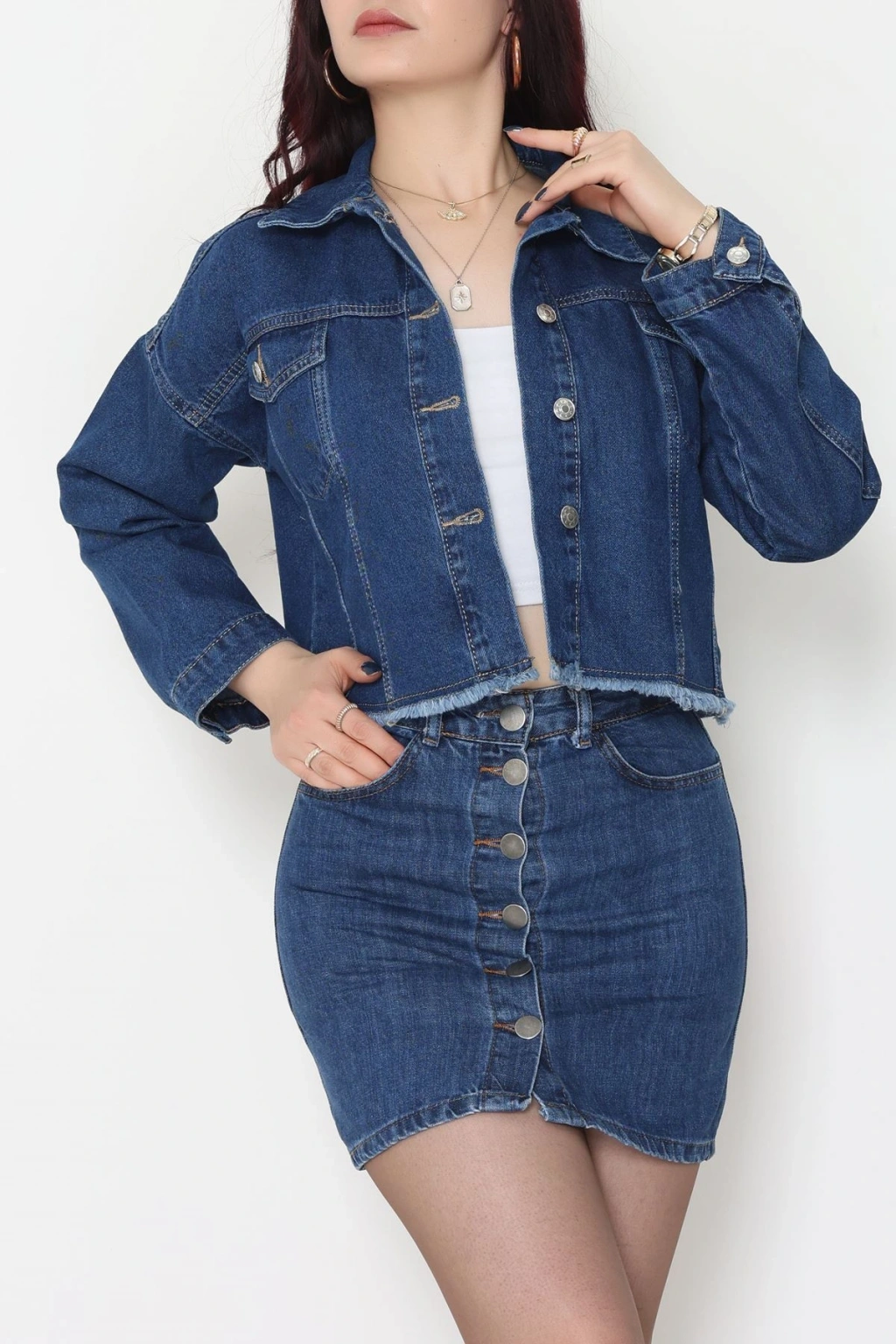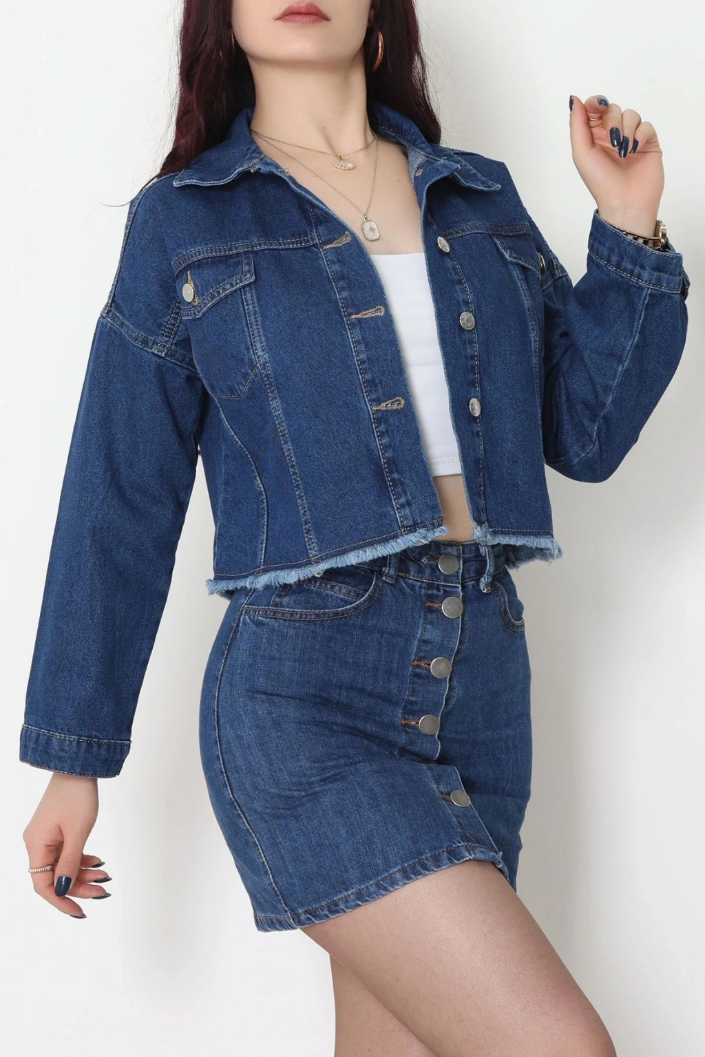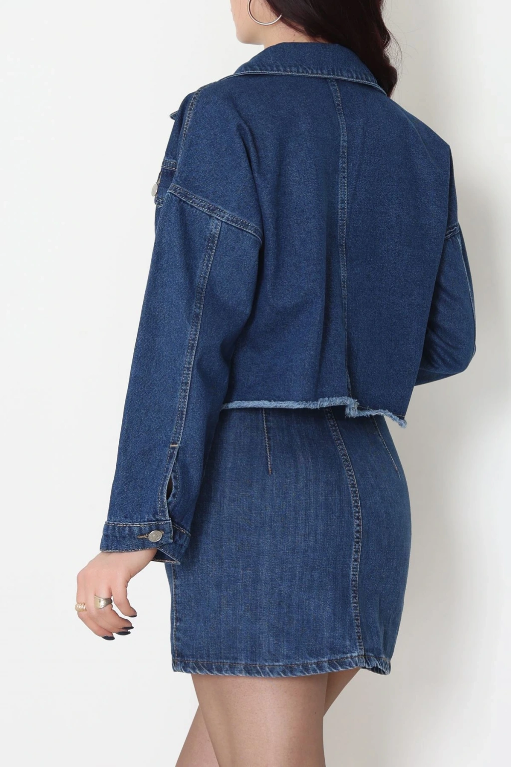 Çift Cepli Püsküllü Kot Ceket Koyumavi - 31726.2059.