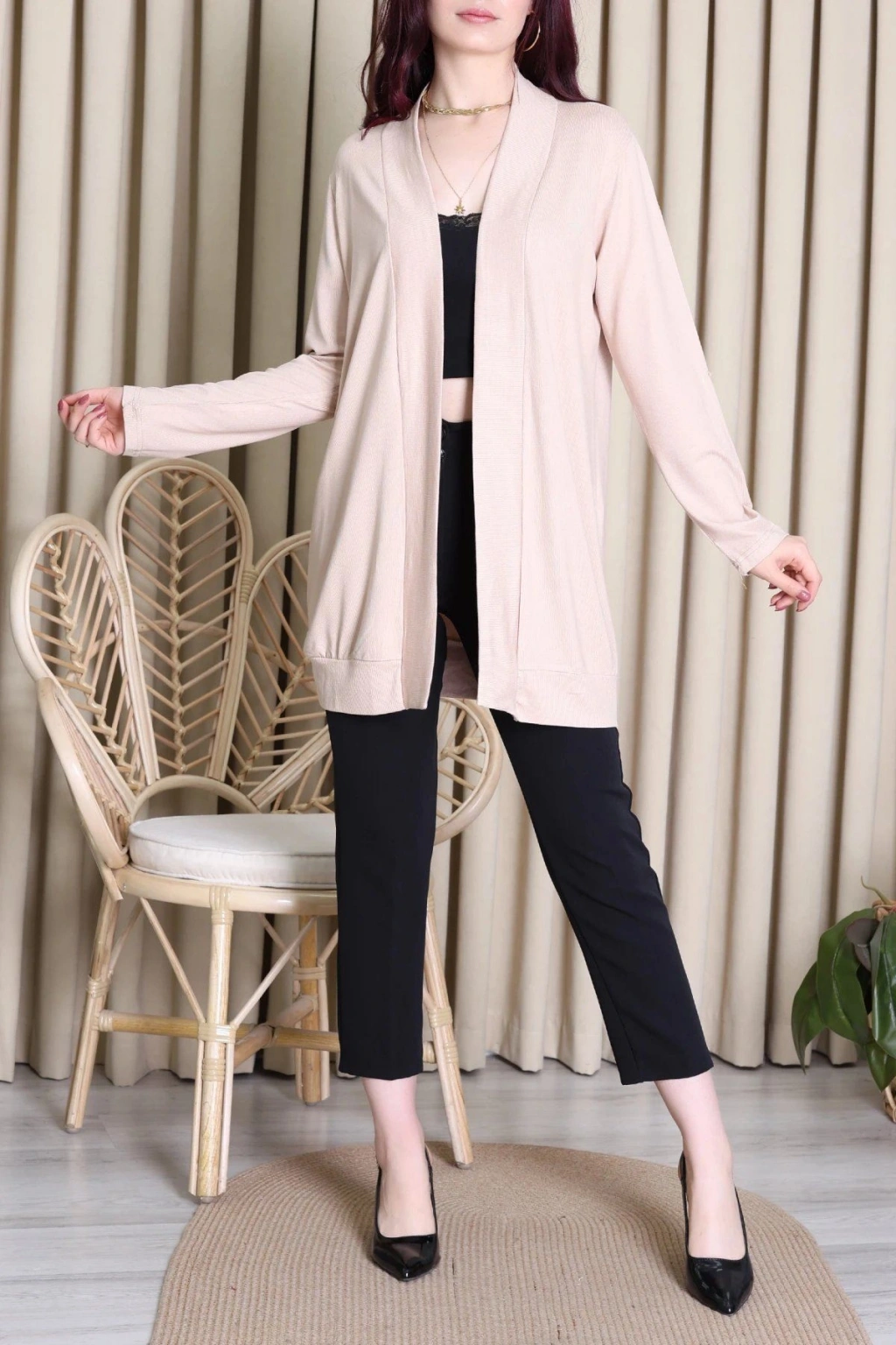 # Bej Yazlık Hırka ## Tasarım Özellikleri ve Konfor Hafif yapısı sayesinde terletmeyen bej **yazlık hırka**, serin akşamların kurtarıcısı olan zarif tasarıma sahiptir. Bu parça, yumuşak dokusuyla gün boyu ferah kullanım hissi sunar. Modelimiz dökümlü kesimiyle bedeni sıkmadan sarar ve hareket özgürlüğünü artırır. **İnce triko** kumaş kalitesiyle öne çıkan tasarım, nefes alan yapısı sayesinde sıcak havalarda rahatlıkla tercih edilebilir. Bej tonunun doğallığıyla bütünleşen bu **yazlık hırka arayanlar için** ideal seçimdir. Bu özel tasarımın kol manşetlerinde ve etek ucunda yer alan geniş ribana detayları, ürünün formunu uzun süre korumasına yardımcı olur. Önü açık kesimi ve dikişsiz görünümüyle estetik duruş sergileyen bu **bej hırka**, dayanıklı iplik yapısıyla kalitesini hissettirir. Uzun kollu yapısı güneşten korunmak veya hafif serinlikten etkilenmemek adına fonksiyonel çözüm sunar. Pürüzsüz yüzeyiyle dikkat çeken bu yazlık hırka, fiyat performans ürünü olarak kullanıcılarla buluşur. Beklentilerinizi karşılayan model, ekonomik seçenek arayanlar için kalite standartları sağlar. Hemen sepete ekleyin.