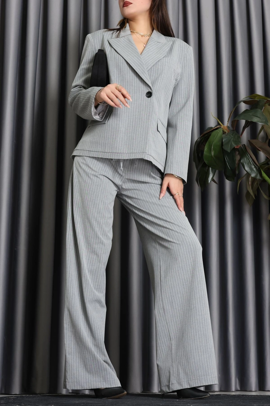 Çizgili Ceket Takım Gri - 9519.1995.