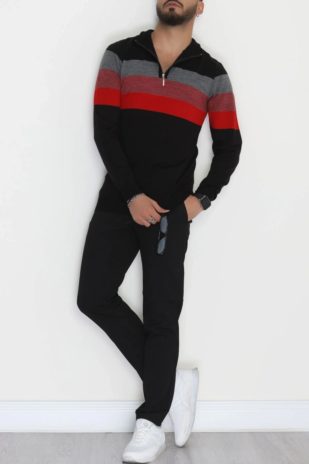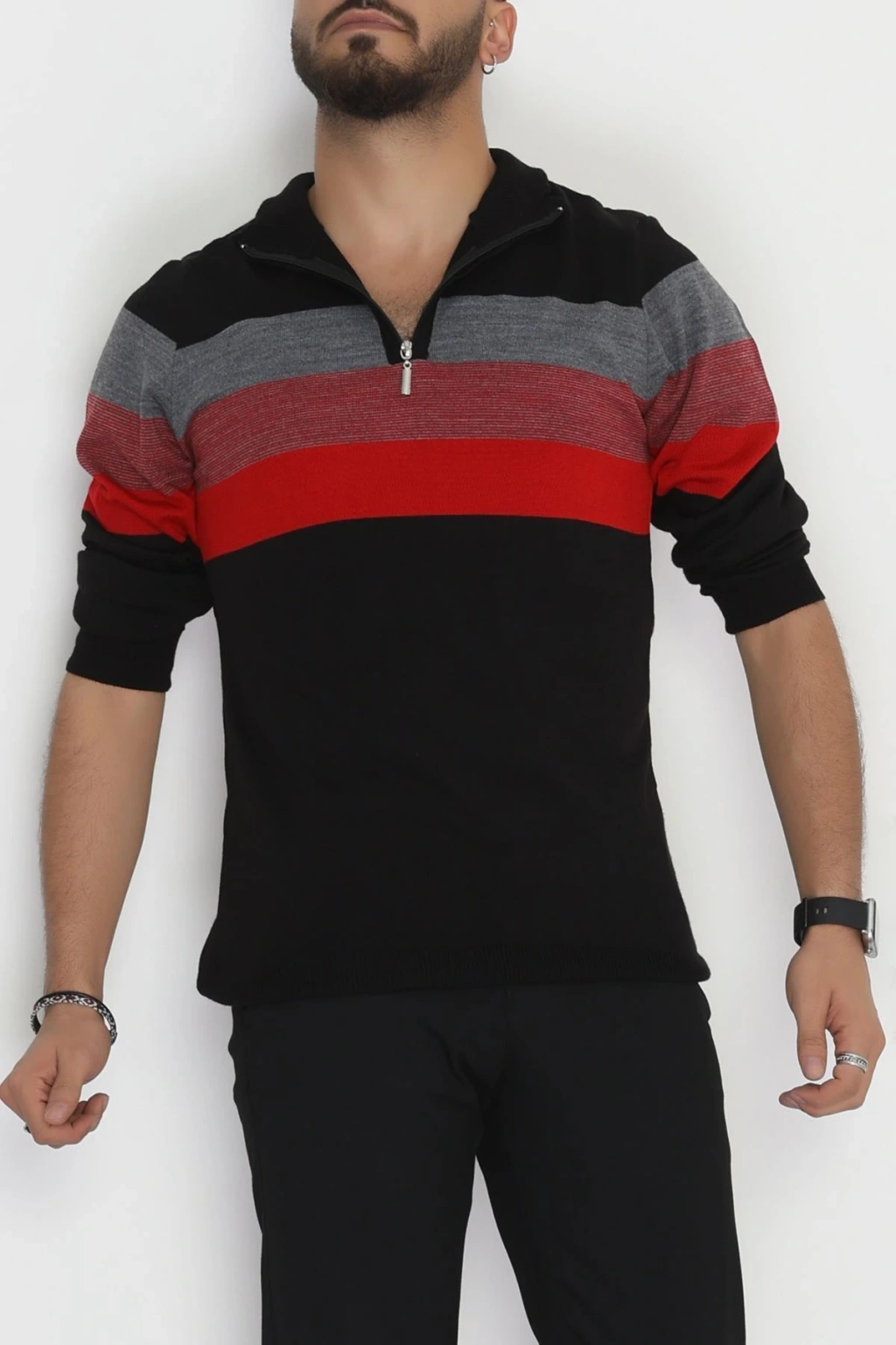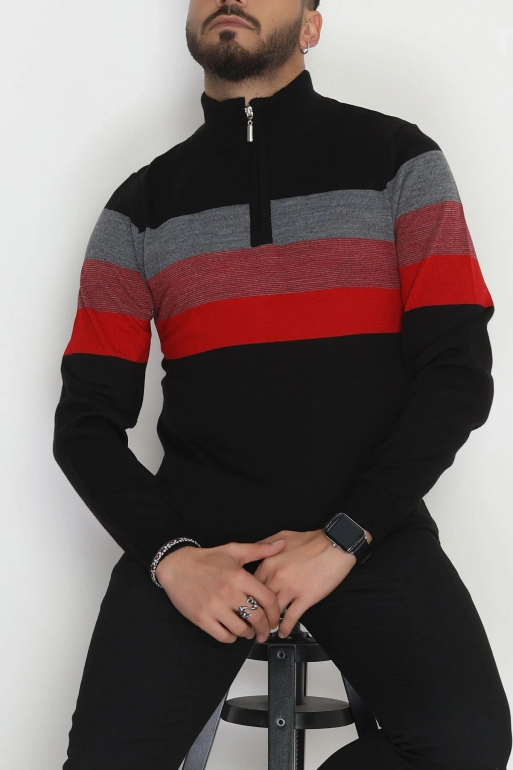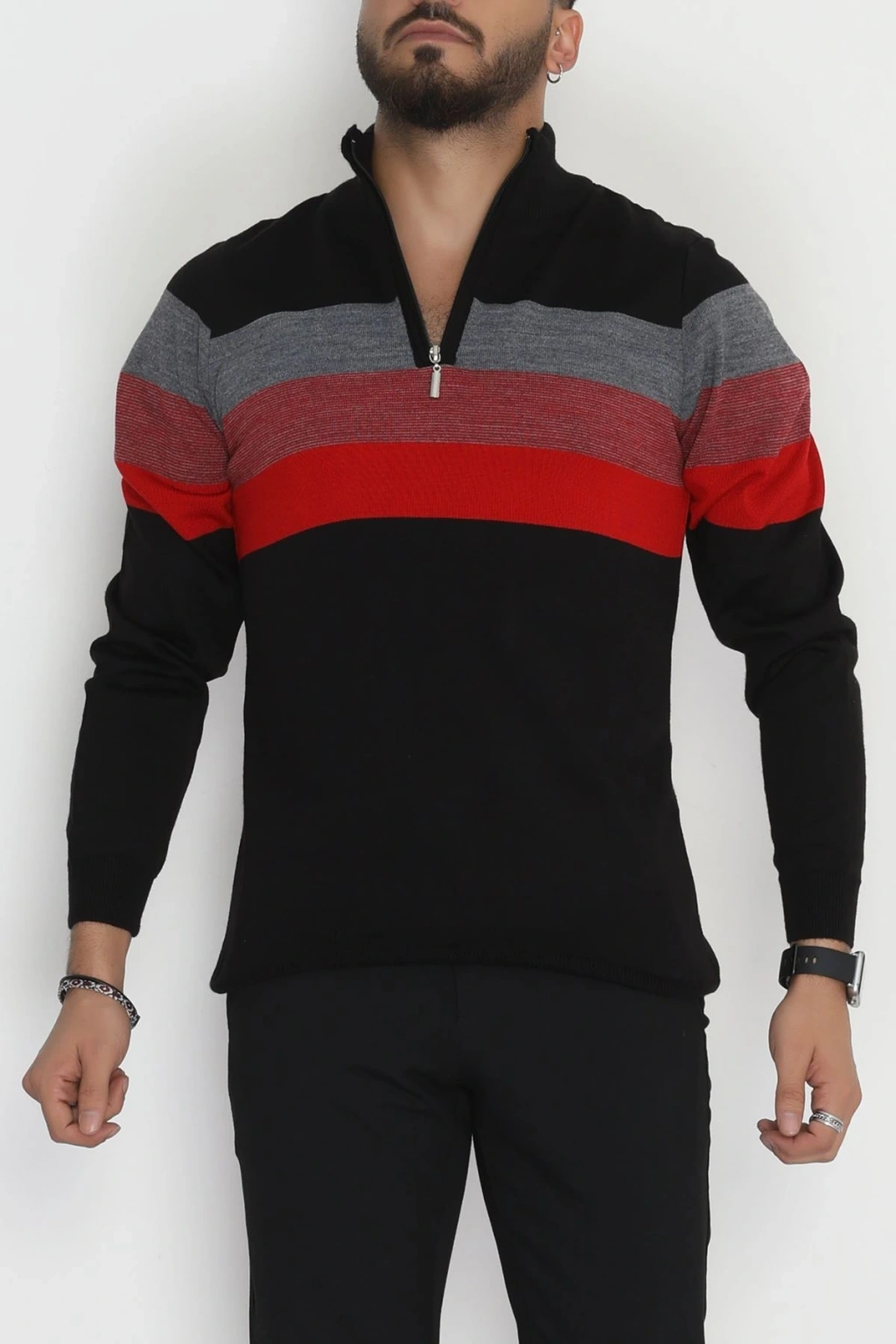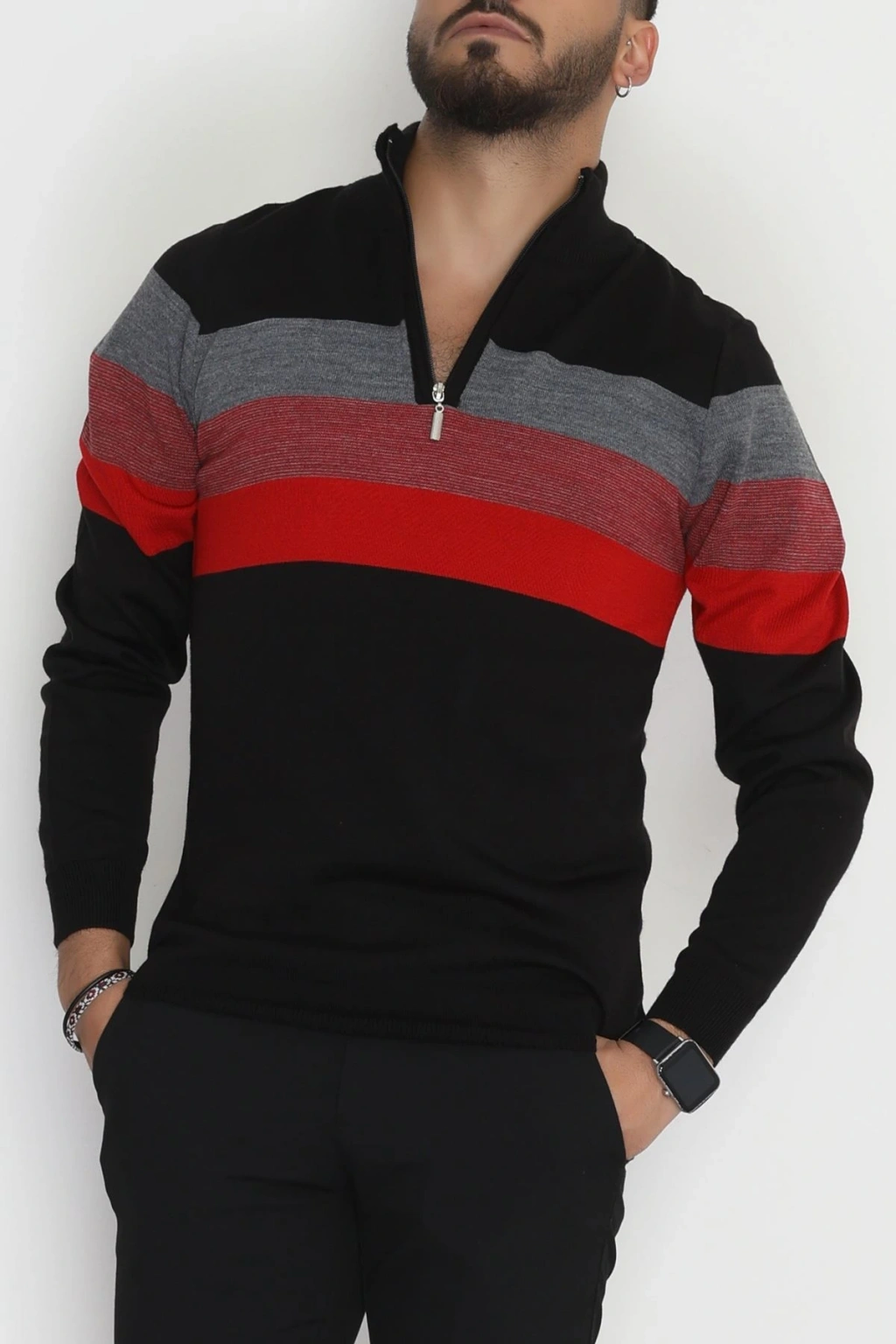 Yakası Fermuarlı Erkek Triko Siyah - 2550.2052.