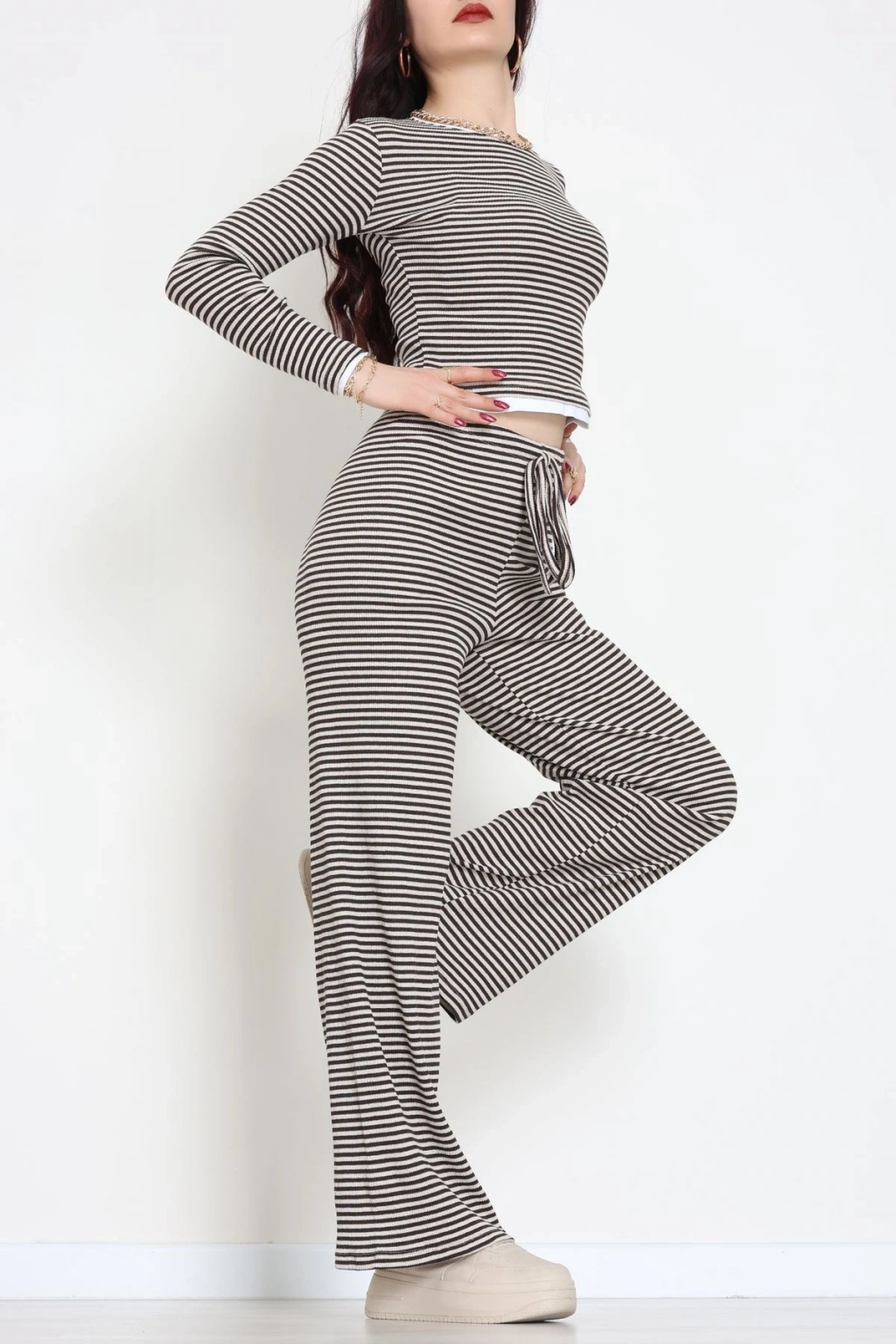 Çizgili Kaşkorse İkili Takım Siyahkahve - 55033.1567.