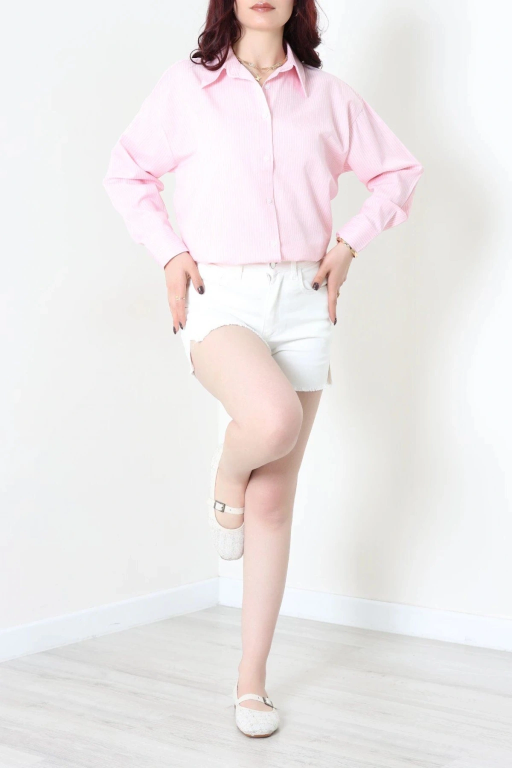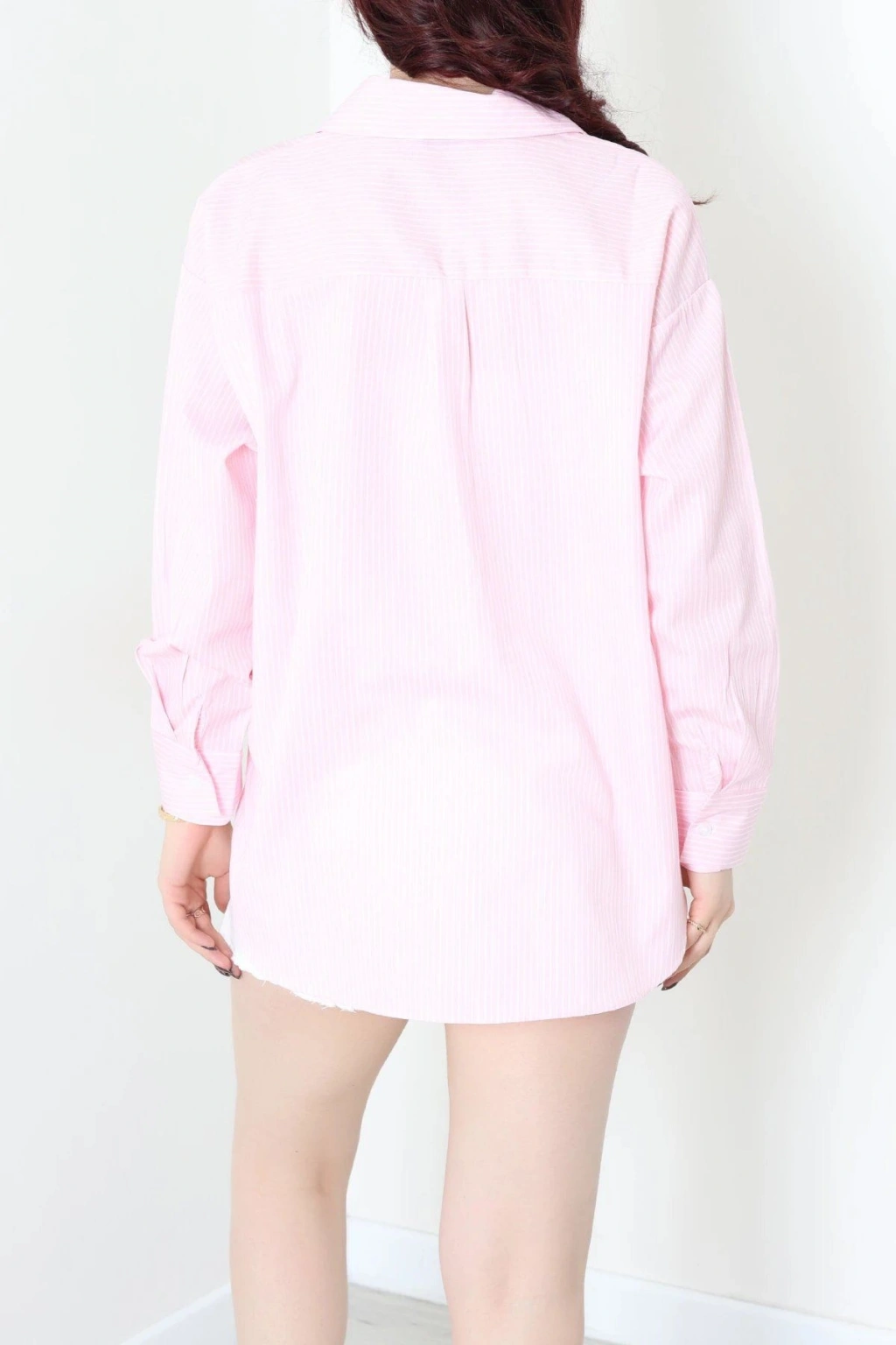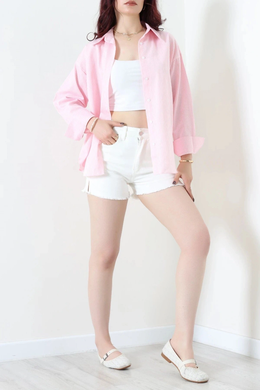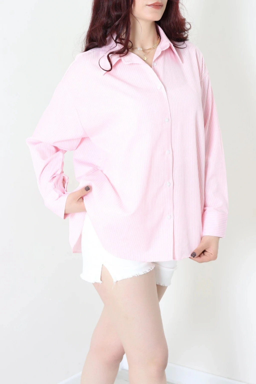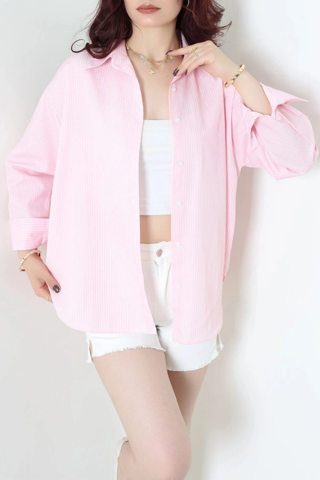 # Pembe Çizgili Oversize Gömlek ## Rahat Kesim ve Modern Tasarım Detayları Yumuşak dokusuyla konfor sunan bu **çizgili oversize gömlek**, pembe rengin enerjisini klasik kesimle birleştirerek günlük şıklığınızı en üst seviyeye taşıyor. Bu parça, hafif yapısı sayesinde gün boyu ferah hissetmenizi sağlayan bir kullanım deneyimi sunar. **Pembe gömlek** arayışında olanlar için tasarlanan modelimiz, dökümlü omuz yapısıyla modern bir görünüm sergiler. Kumaş yüzeyi, sık dokunmuş dikey çizgileriyle estetik bir derinlik kazanarak hareketli bir stil oluşturur. Bu tasarımda kullanılan terikoton karışımlı doku, ütüleme gerektirmeyen yapısıyla kolaylık sağlarken **pamuklu doku** içeriği cildinize nefes aldırır. Ön kısmındaki beyaz düğme detayları ve geniş manşetleri, bu **kadın gömlek** modeline karakteristik bir hava katar. Dikey çizgilerin yarattığı zarif illüzyon sayesinde vücut hatlarını yumuşatan parça, formunu uzun süre korur. Pembe çizgili oversize gömlek arayanlar için tasarlanan bu seçenek, oldukça ekonomik bir fiyat performans ürünüdür. Satın almak için hemen sepete ekleyin.