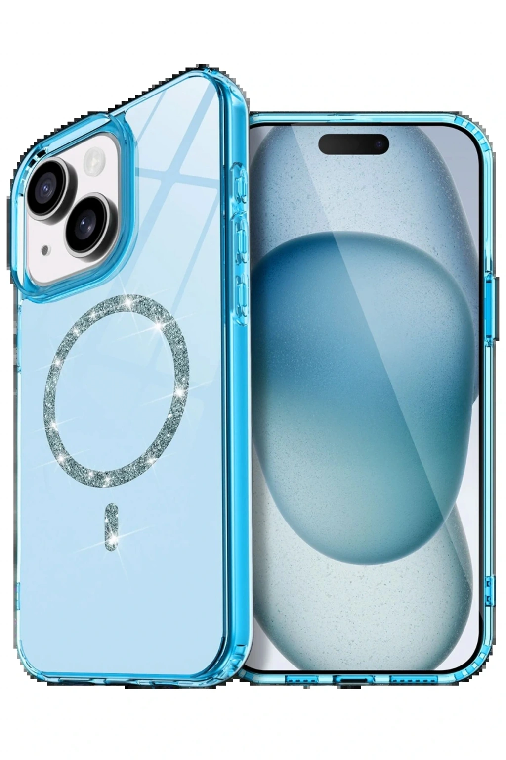 CPT05 Apple iPhone 15 Live Diamond Magsafe Kapak - Mavi