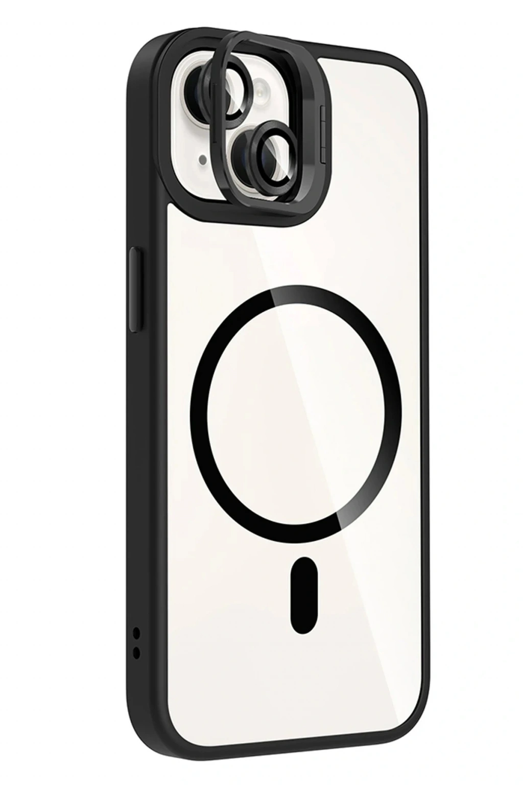CPT05 Apple iPhone 15 Plus Remim Lensli Magsafe Standlı Kapak - Siyah