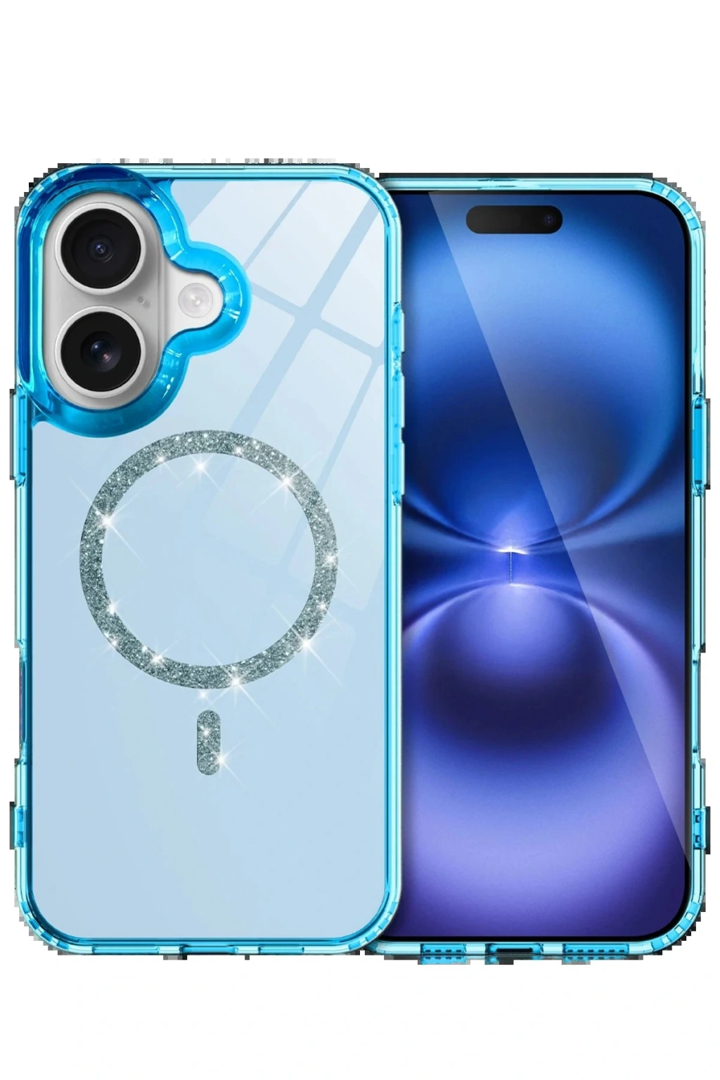 CPT05 Apple iPhone 16 Plus Live Diamond Magsafe Kapak - Mavi