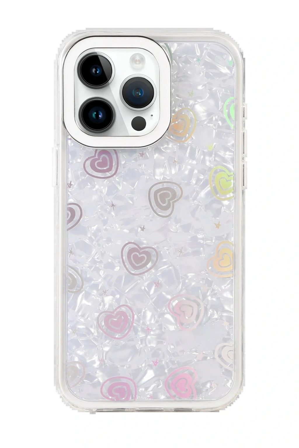 ✅ Kristal şeffaf tasarımı ve renkli kalp desenleriyle şık bir görünüm sunar.