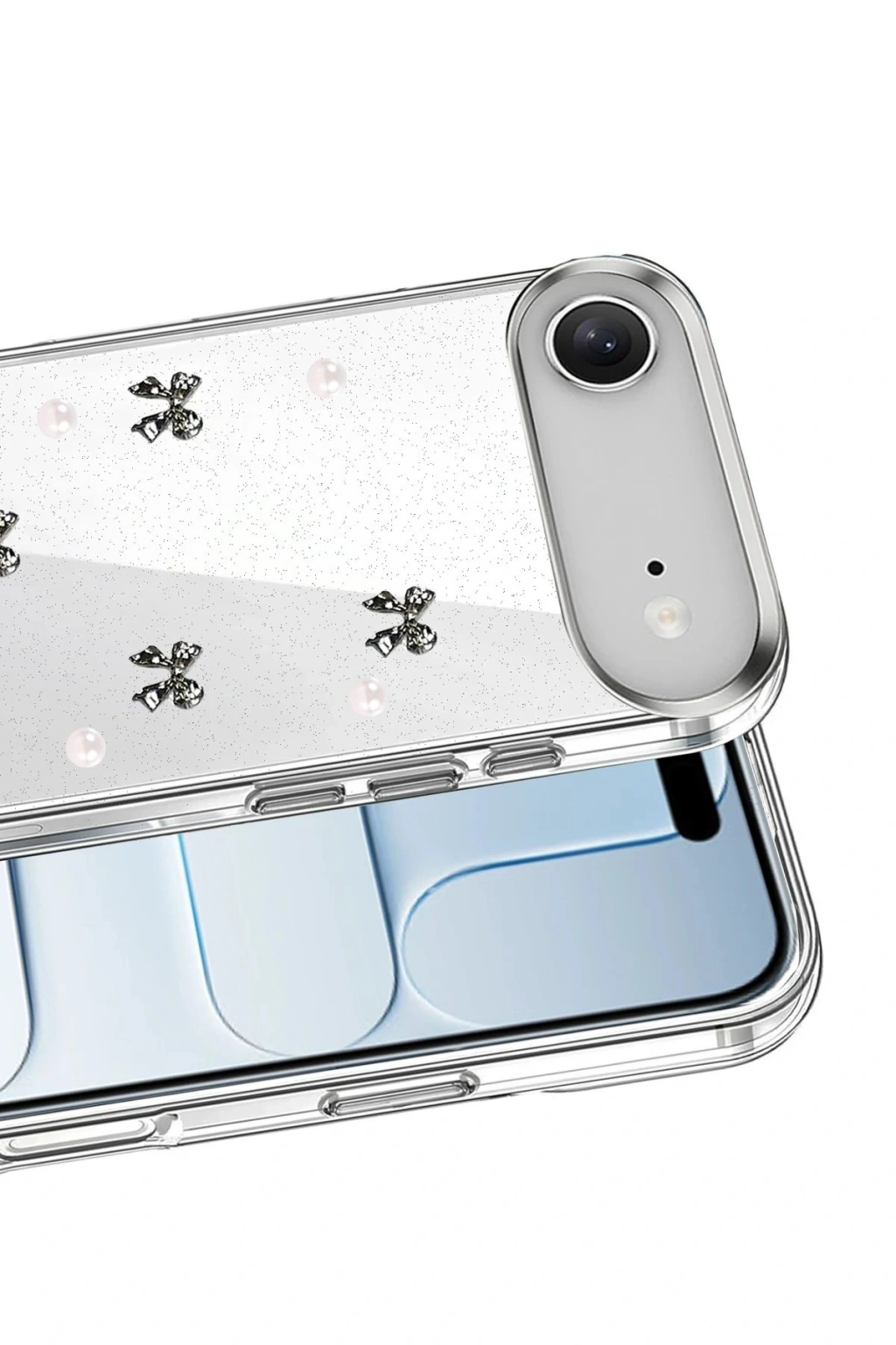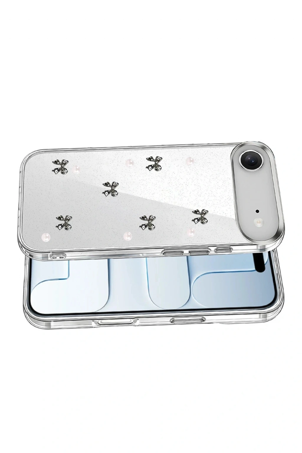 Fiyonk, yıldız, kelebek, lale, çiçek, kalp ve gül gibi zarif detaylarla süslenmiş bu kapak; simli, şeffaf tasarımıyla estetik ve korumayı bir araya getiriyor. Telefonunuzu yalnızca dış etkenlerden korumakla kalmaz, aynı zamanda ona göz alıcı bir stil kazandırır. Günlük kullanımda dikkat çeken tasarımı sayesinde cihazınızın şıklığı öne çıkar.