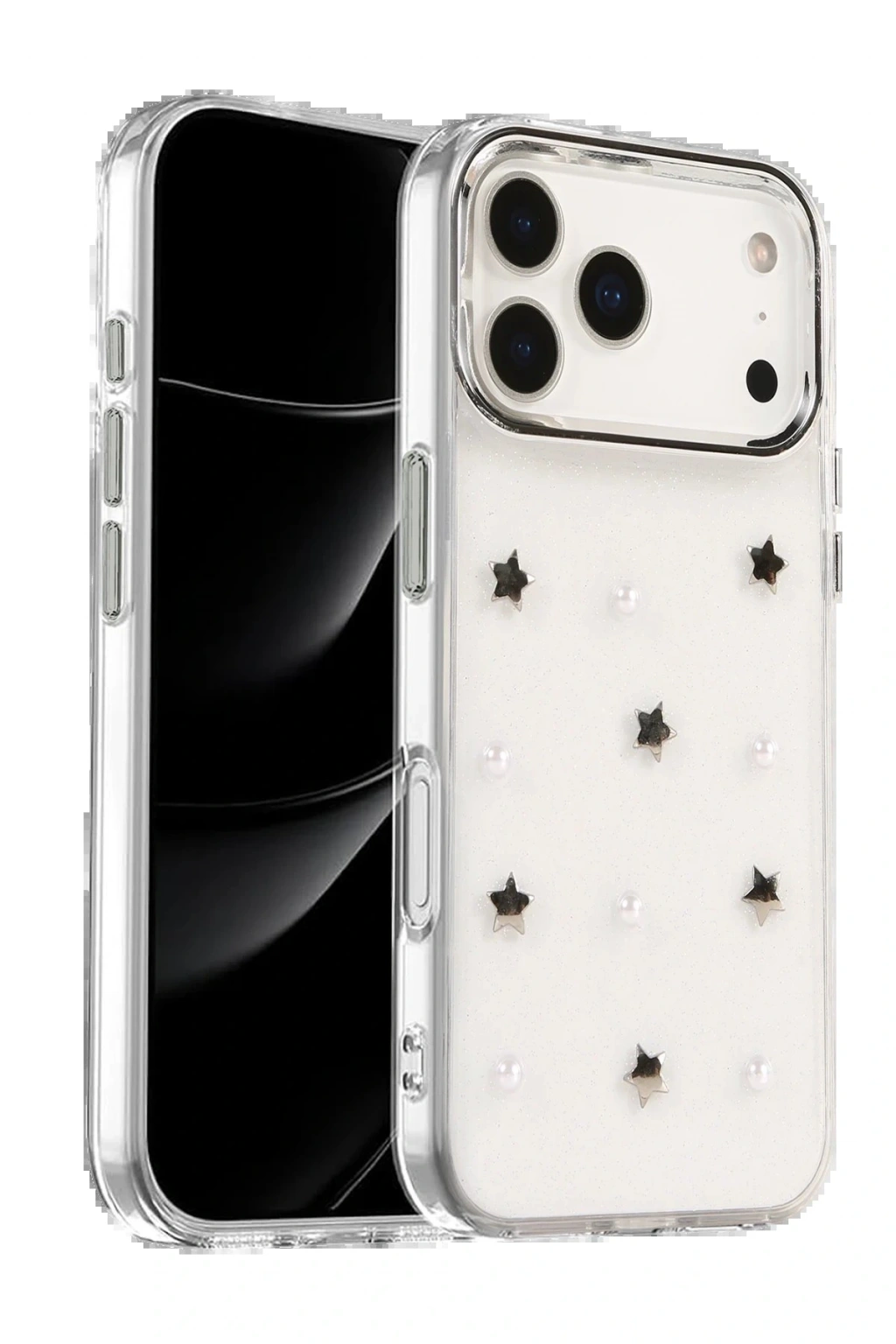 Fiyonk, yıldız, kelebek, lale, çiçek, kalp ve gül gibi zarif detaylarla süslenmiş bu kapak; simli, şeffaf tasarımıyla estetik ve korumayı bir araya getiriyor. Telefonunuzu yalnızca dış etkenlerden korumakla kalmaz, aynı zamanda ona göz alıcı bir stil kazandırır. Günlük kullanımda dikkat çeken tasarımı sayesinde cihazınızın şıklığı öne çıkar.