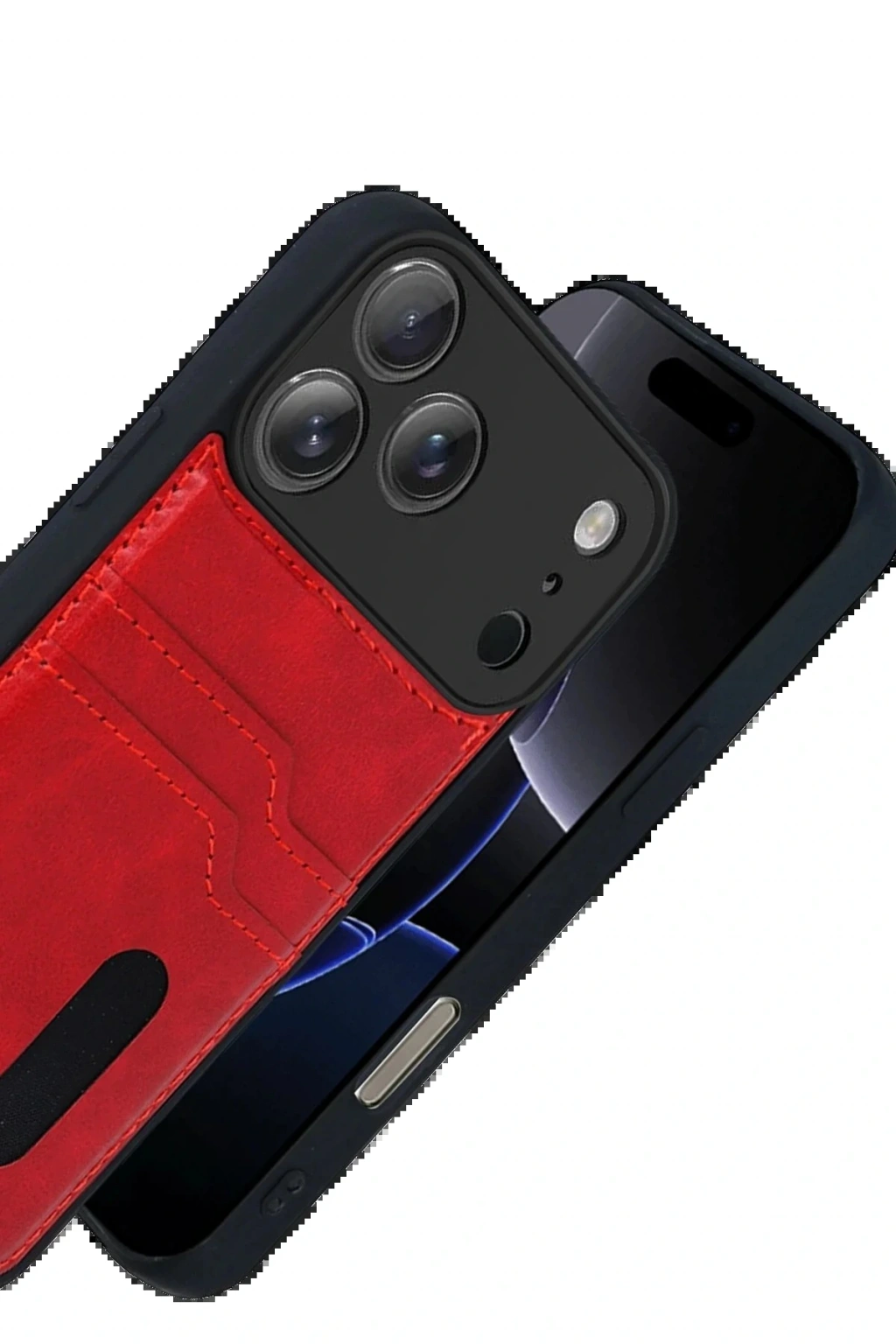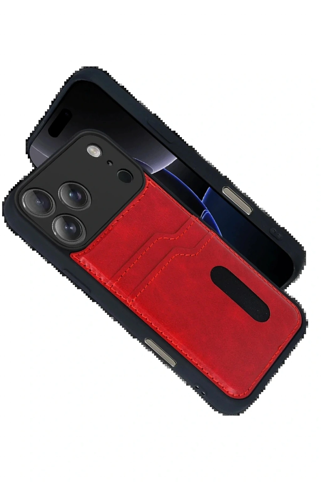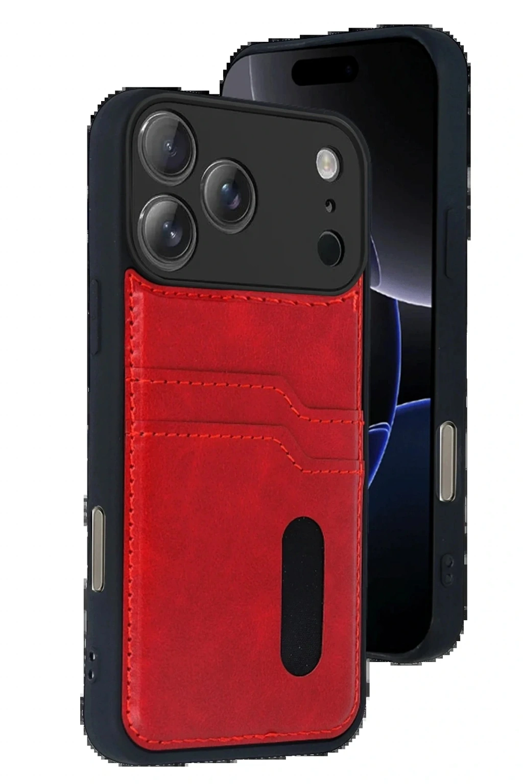 CPT05 Apple iPhone 17 Pro Max Sara Kartvizitli Deri Kılıf - Kırmızı