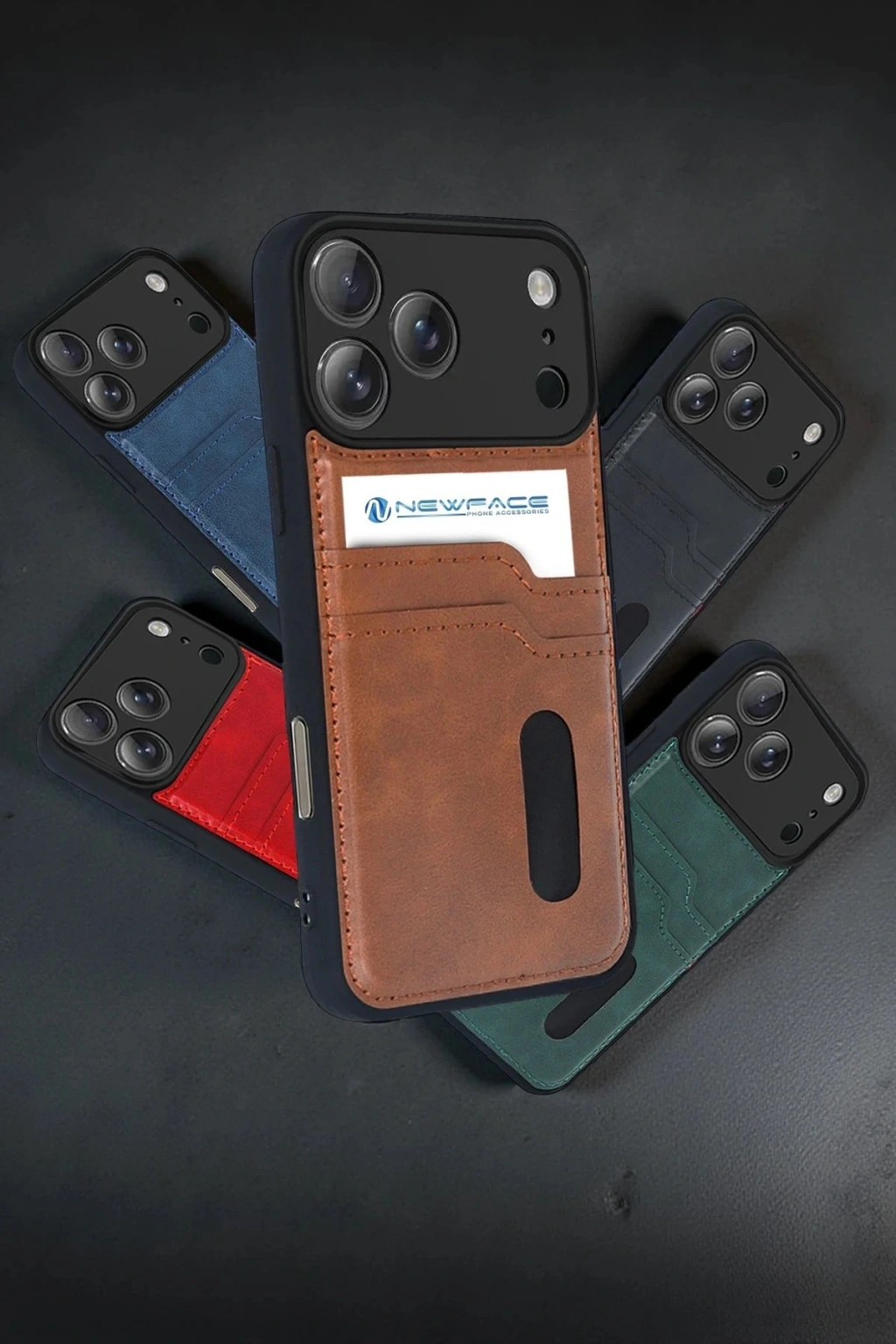 CPT05 Apple iPhone 17 Pro Max Sara Kartvizitli Deri Kılıf - Taba