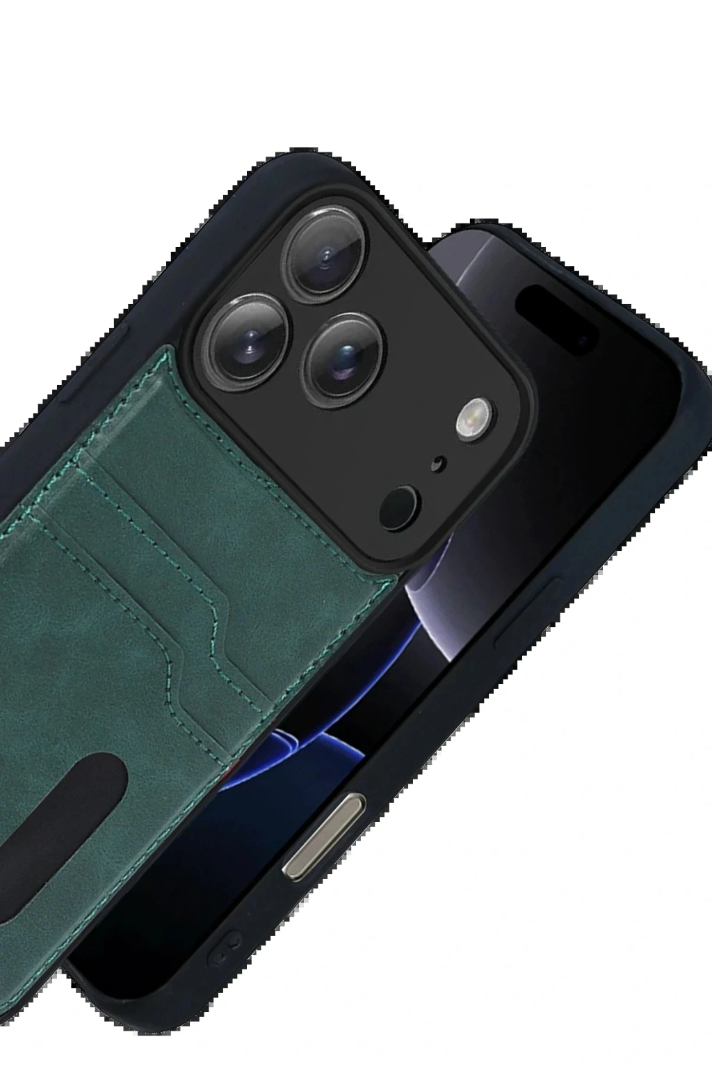 CPT05 Apple iPhone 17 Pro Max Sara Kartvizitli Deri Kılıf - Yeşil