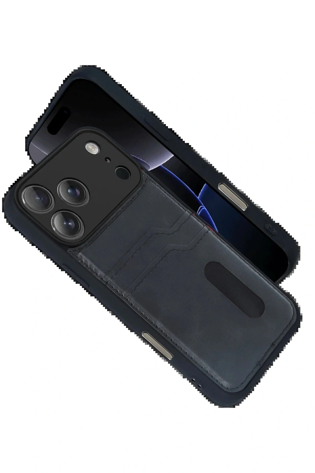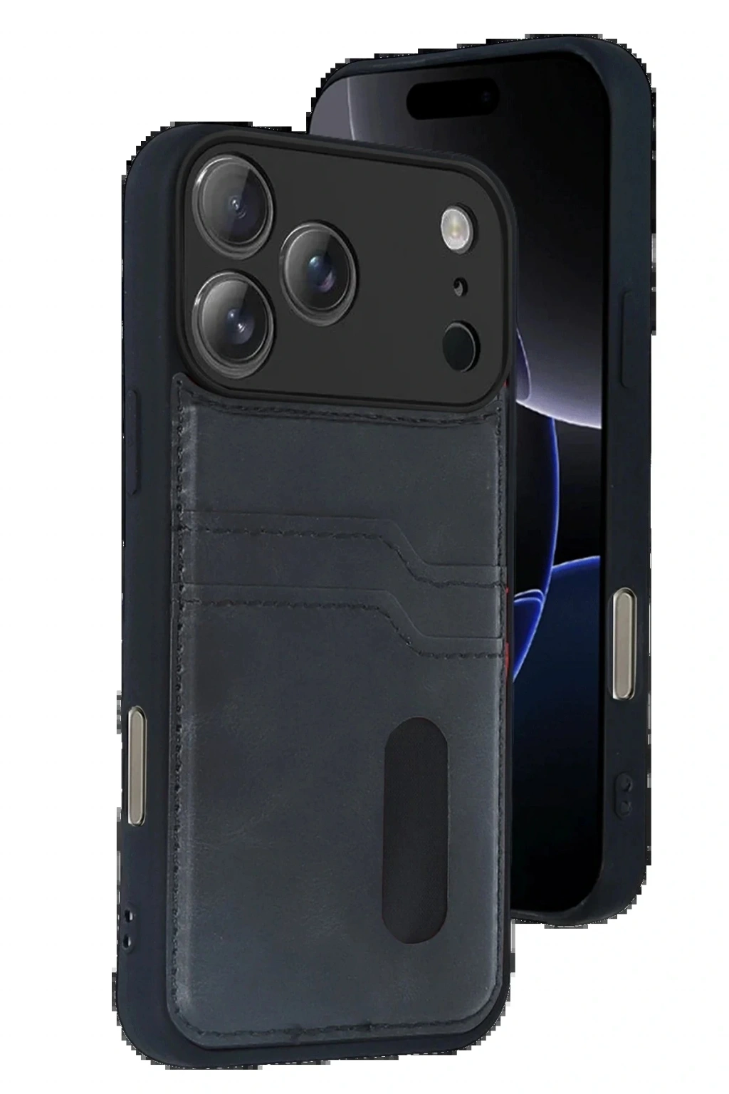 CPT05 Apple iPhone 17 Pro Sara Kartvizitli Deri Kılıf - Siyah