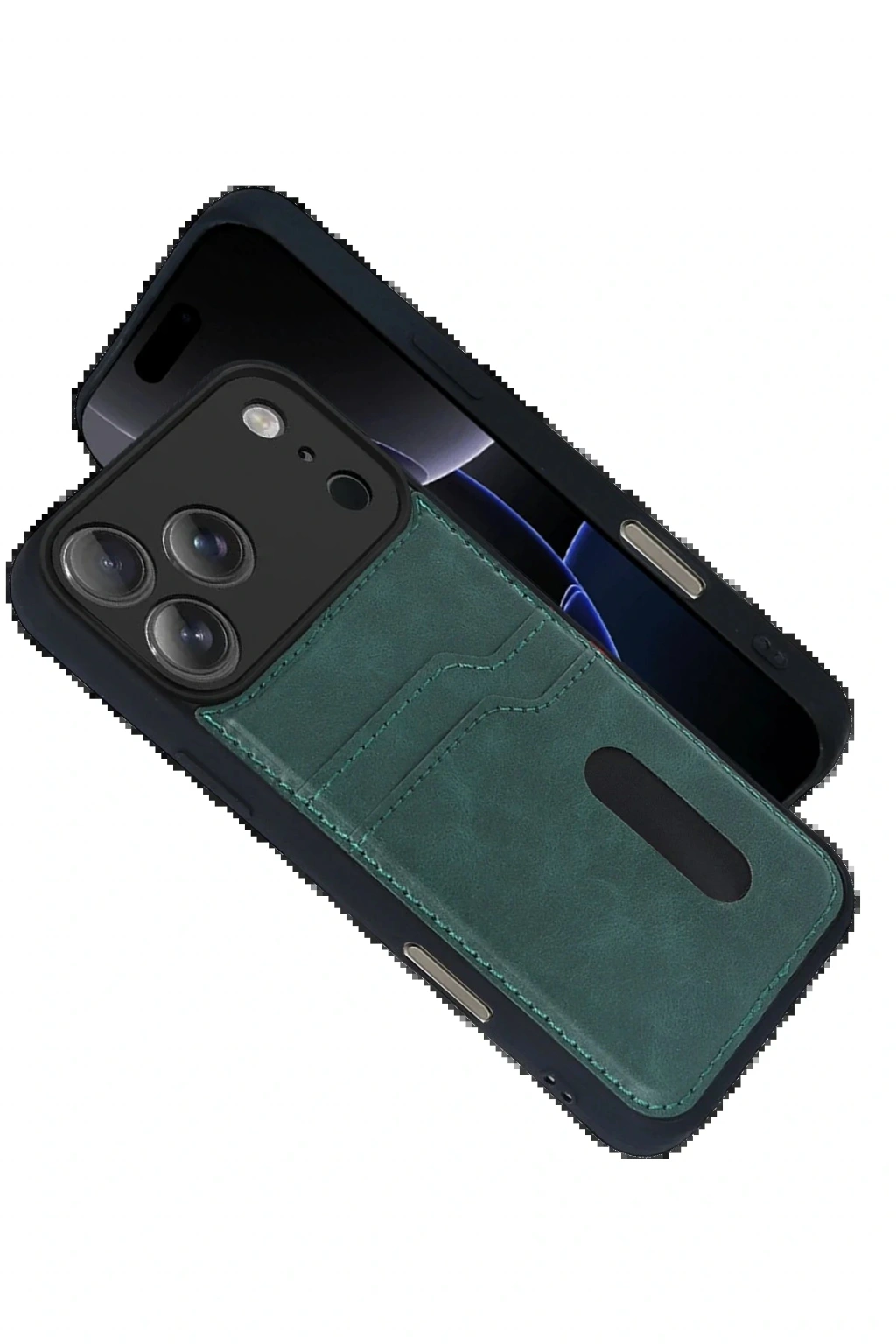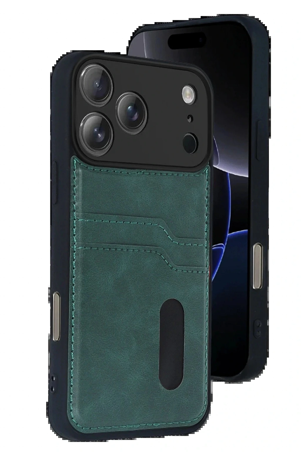 CPT05 Apple iPhone 17 Pro Sara Kartvizitli Deri Kılıf - Yeşil