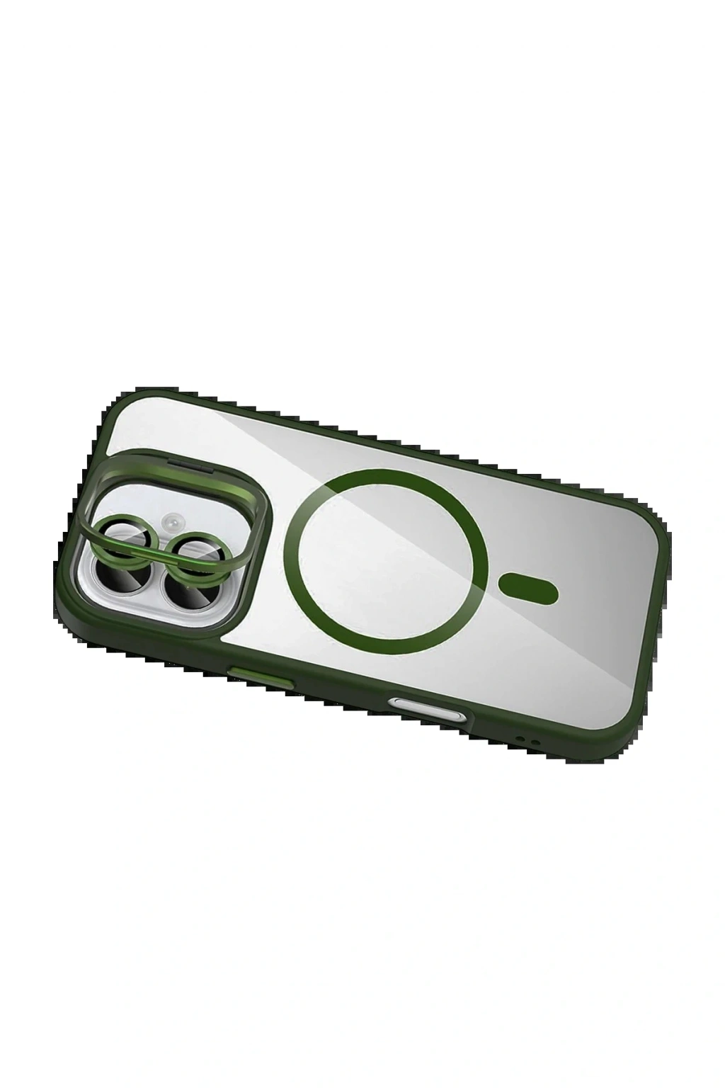 CPT05 Apple iPhone 17 Remim Lensli Magsafe Standlı Kapak - Koyu Yeşil