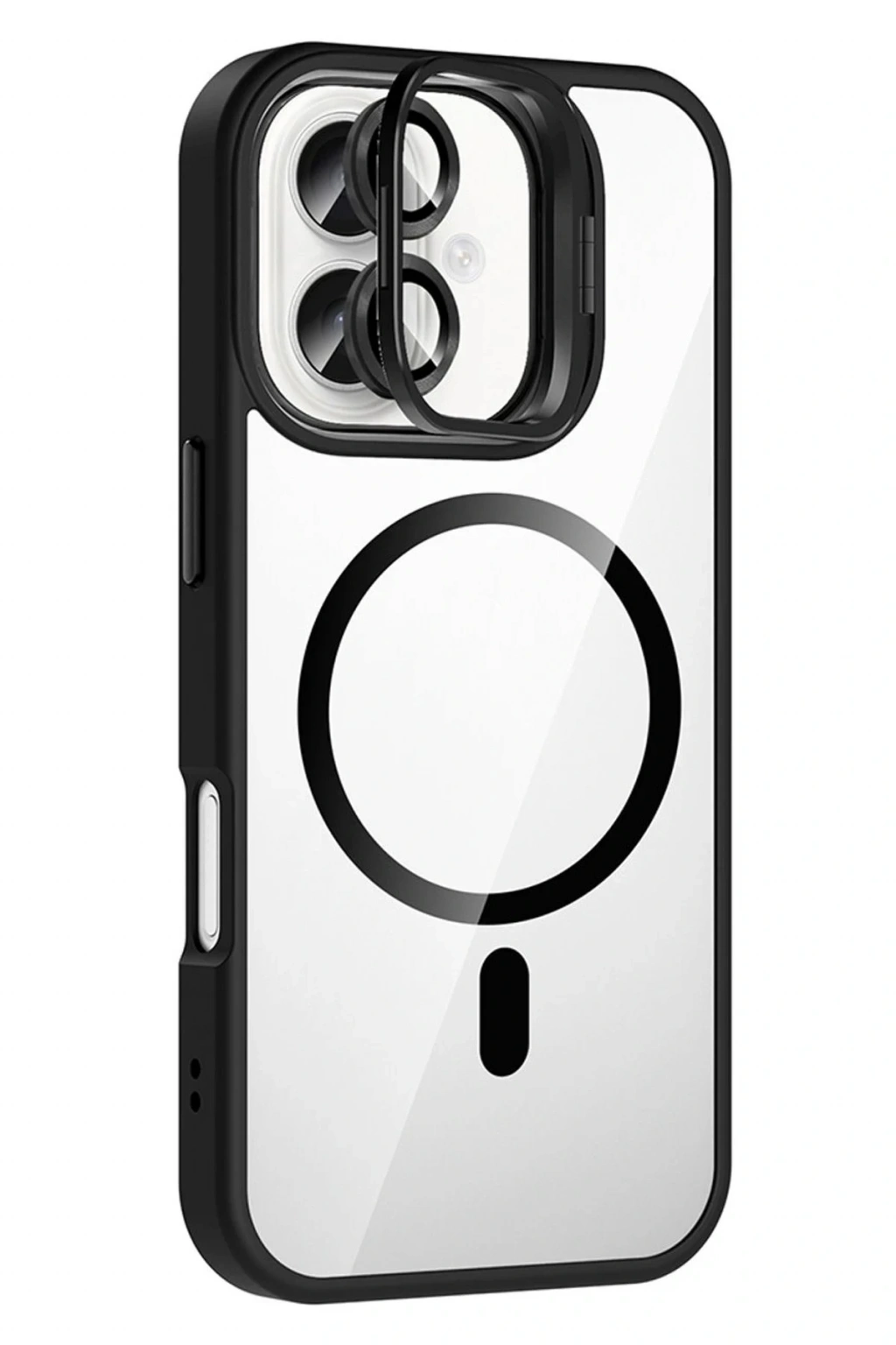 CPT05 Apple iPhone 17 Remim Lensli Magsafe Standlı Kapak - Siyah