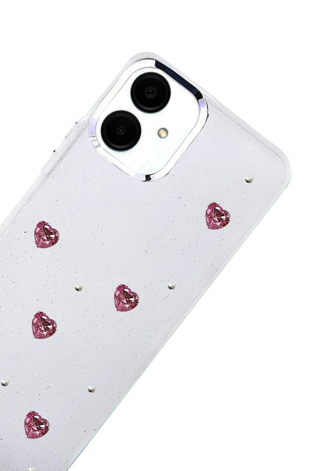 Fiyonk, yıldız, kelebek, lale, çiçek, kalp ve gül gibi zarif detaylarla süslenmiş bu kapak; simli, şeffaf tasarımıyla estetik ve korumayı bir araya getiriyor. Telefonunuzu yalnızca dış etkenlerden korumakla kalmaz, aynı zamanda ona göz alıcı bir stil kazandırır. Günlük kullanımda dikkat çeken tasarımı sayesinde cihazınızın şıklığı öne çıkar.
