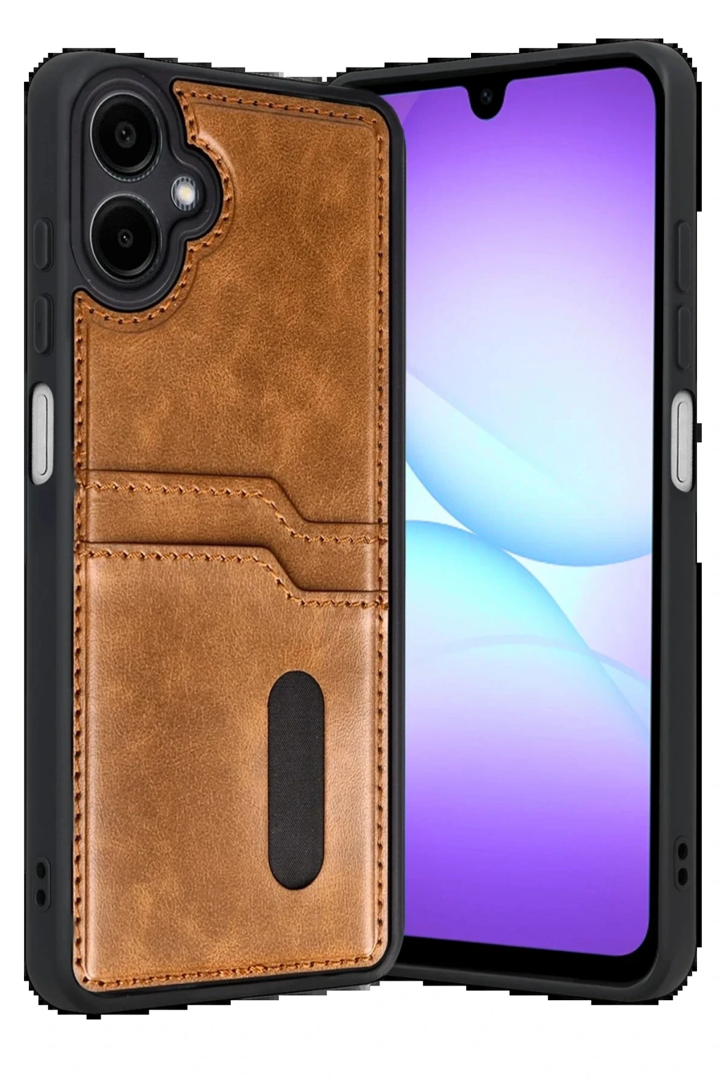 CPT05 Samsung Galaxy A07 4G Sara Kartvizitli Deri Kılıf - Taba