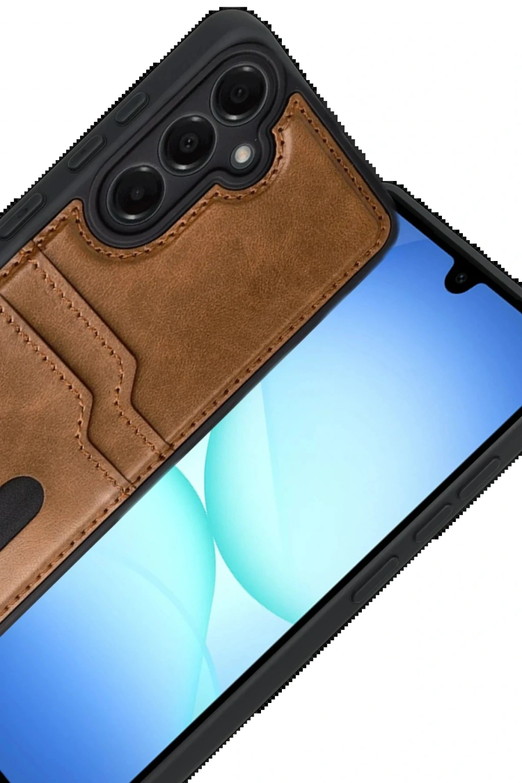 CPT05 Samsung Galaxy A17 5G Sara Kartvizitli Deri Kılıf - Taba