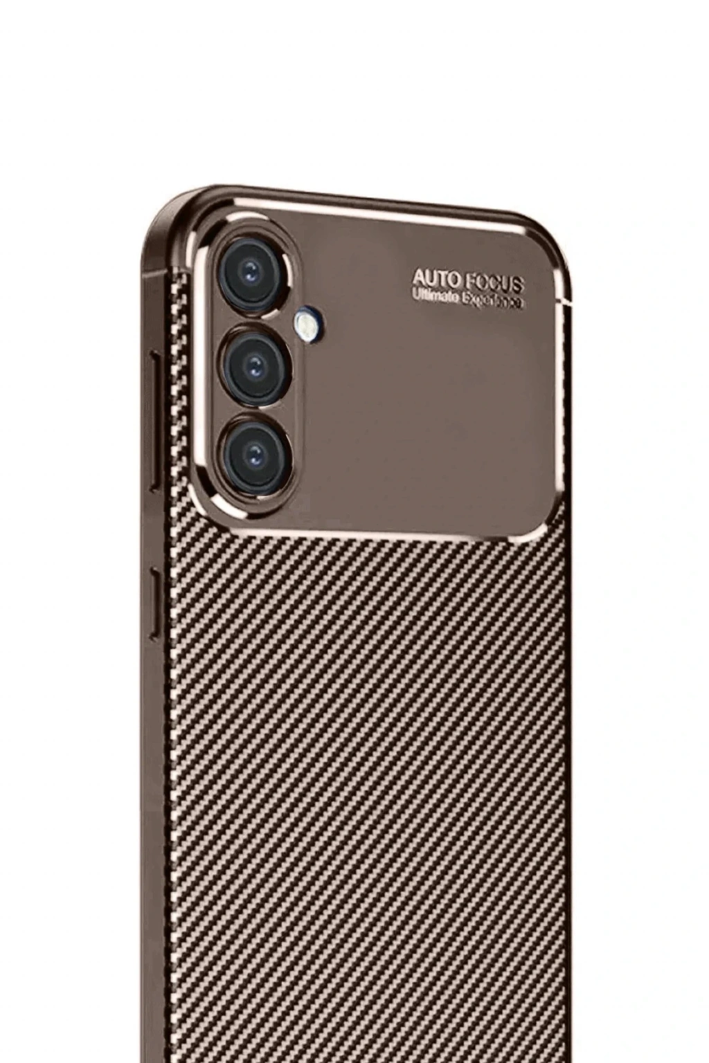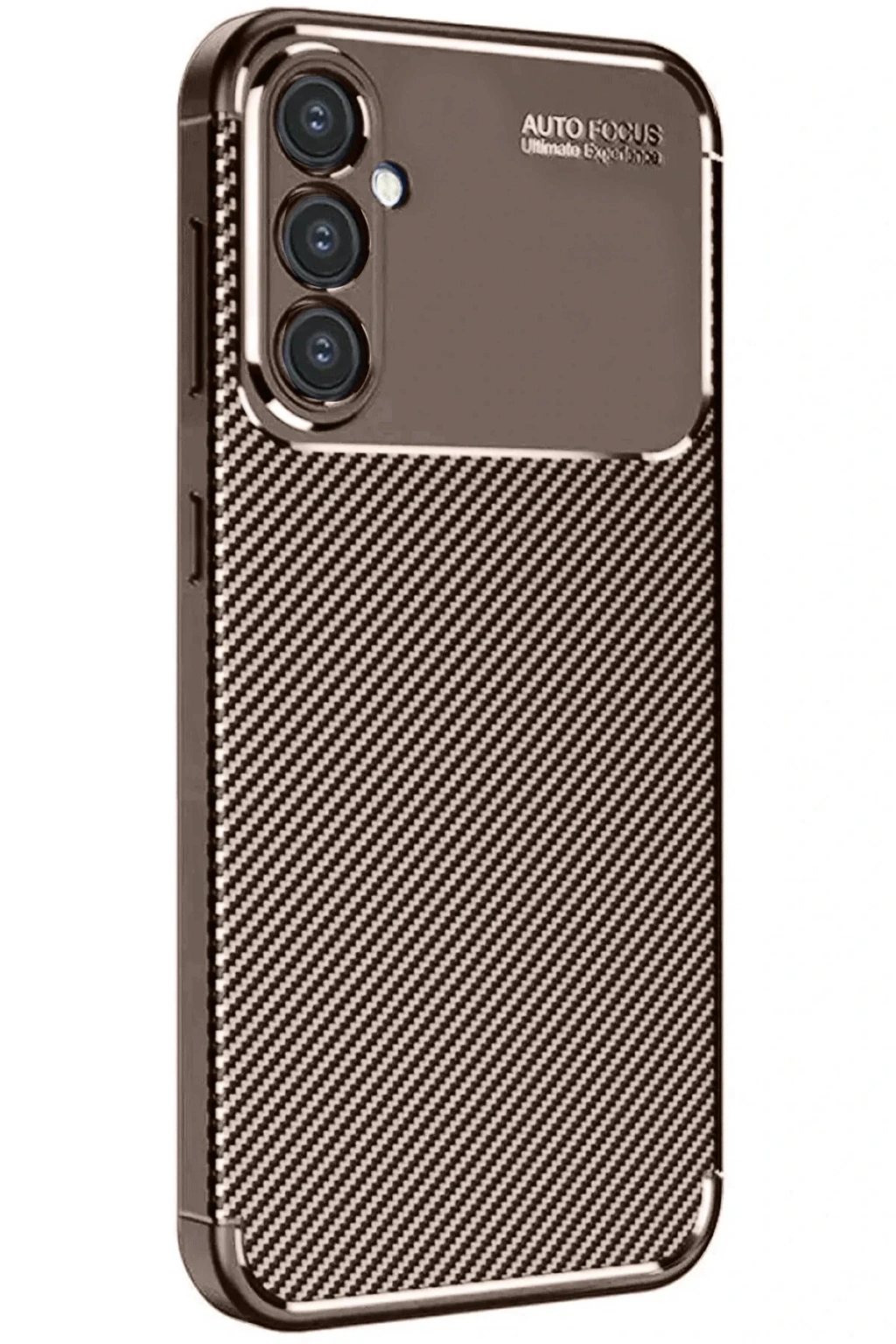 CPT05 Samsung Galaxy S24 FE Kılıf Auto Focus Karbon Kapak - Kahverengi