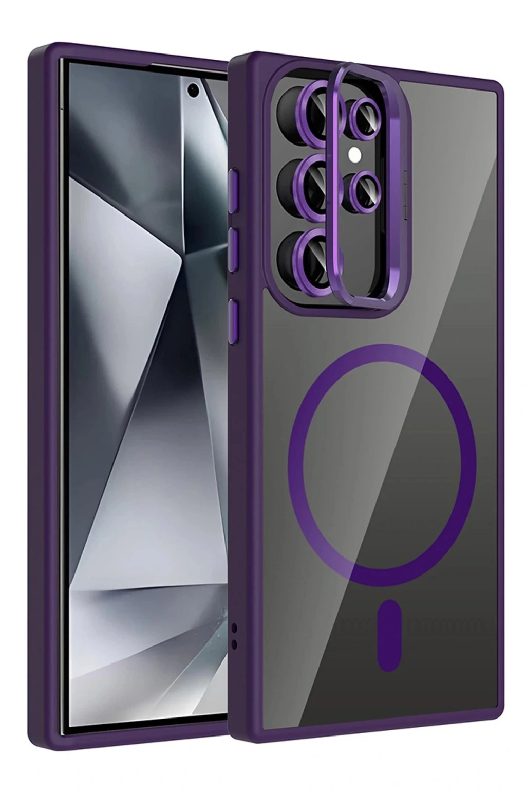 CPT05 Samsung Galaxy S24 Ultra Remim Lensli Magsafe Standlı Kapak - Derin Mor